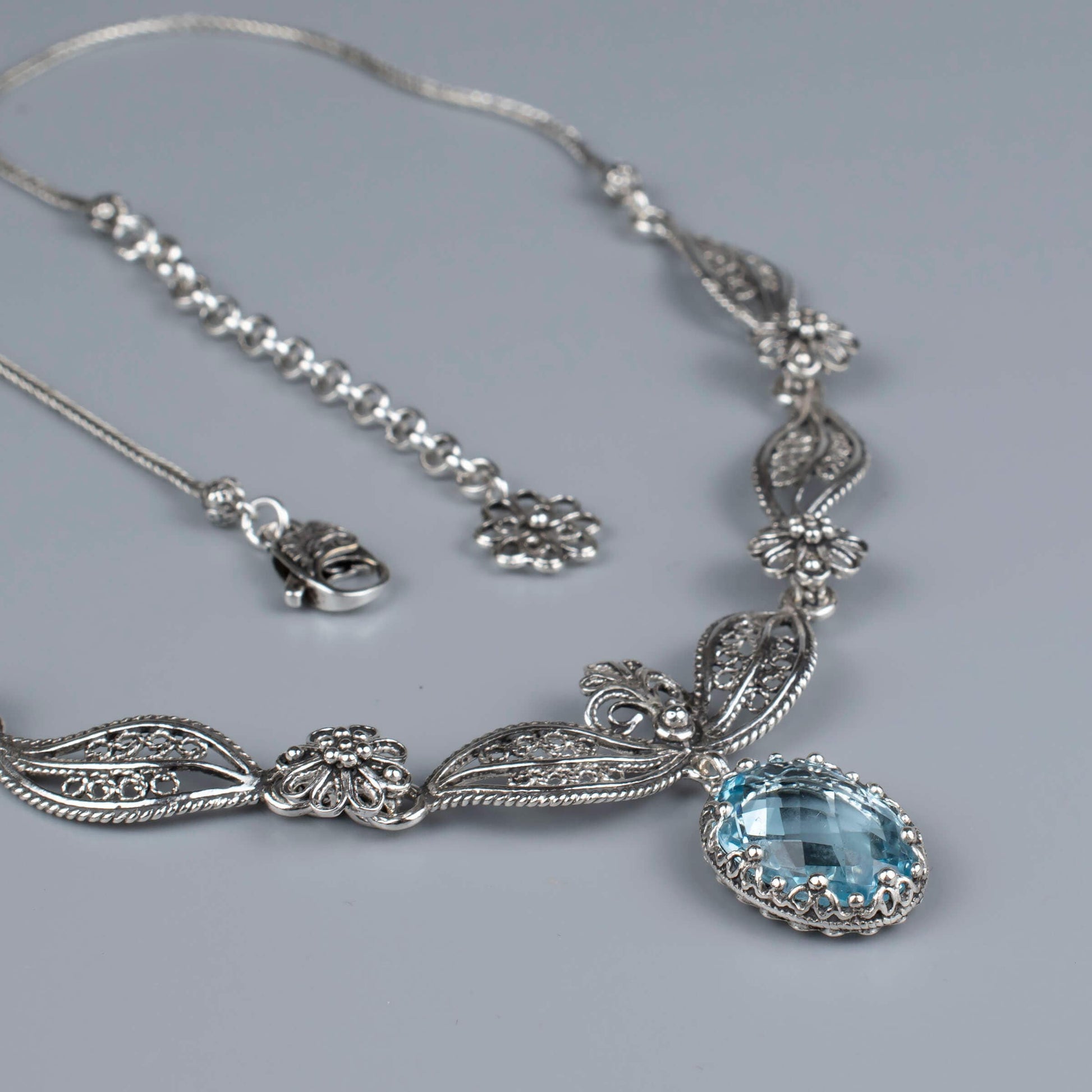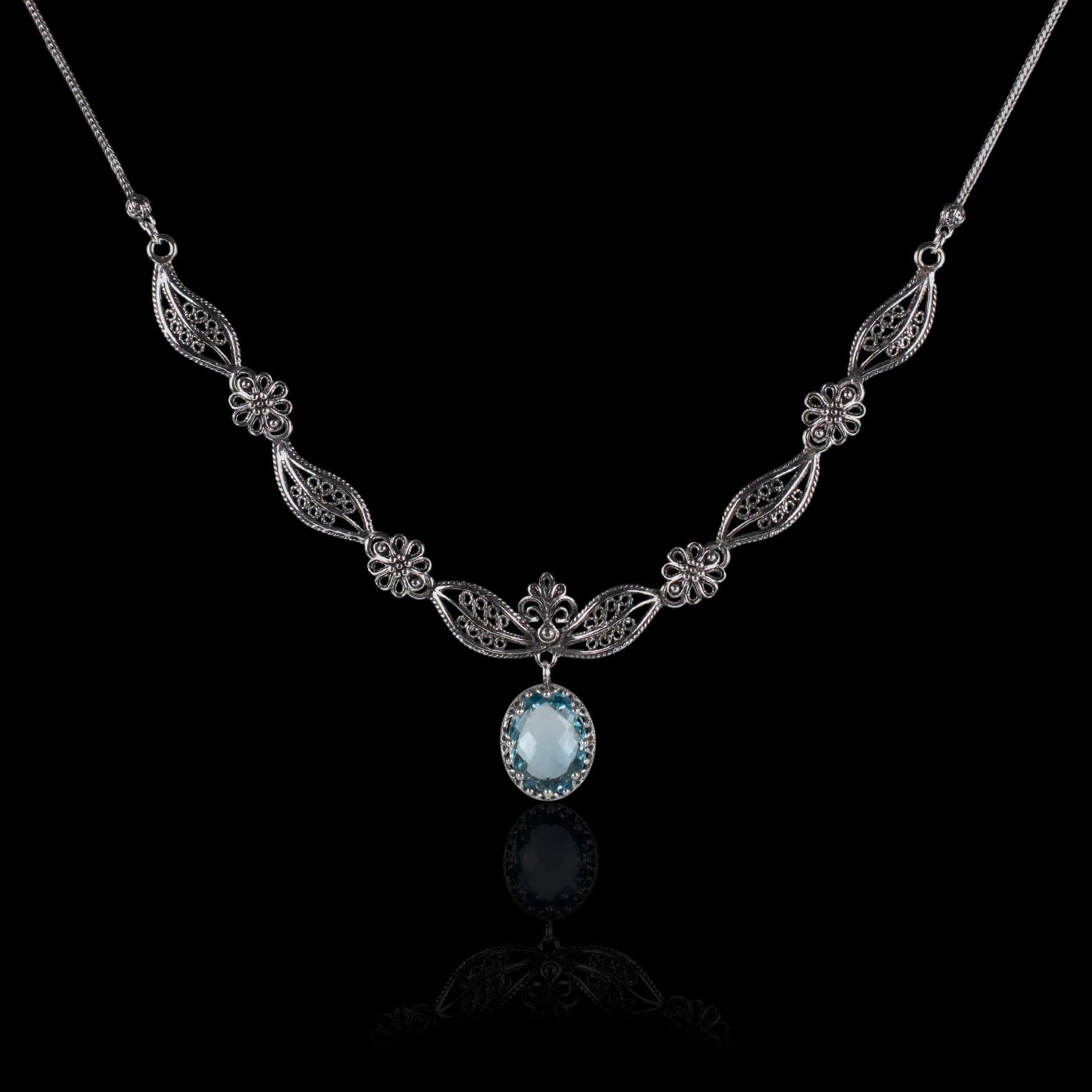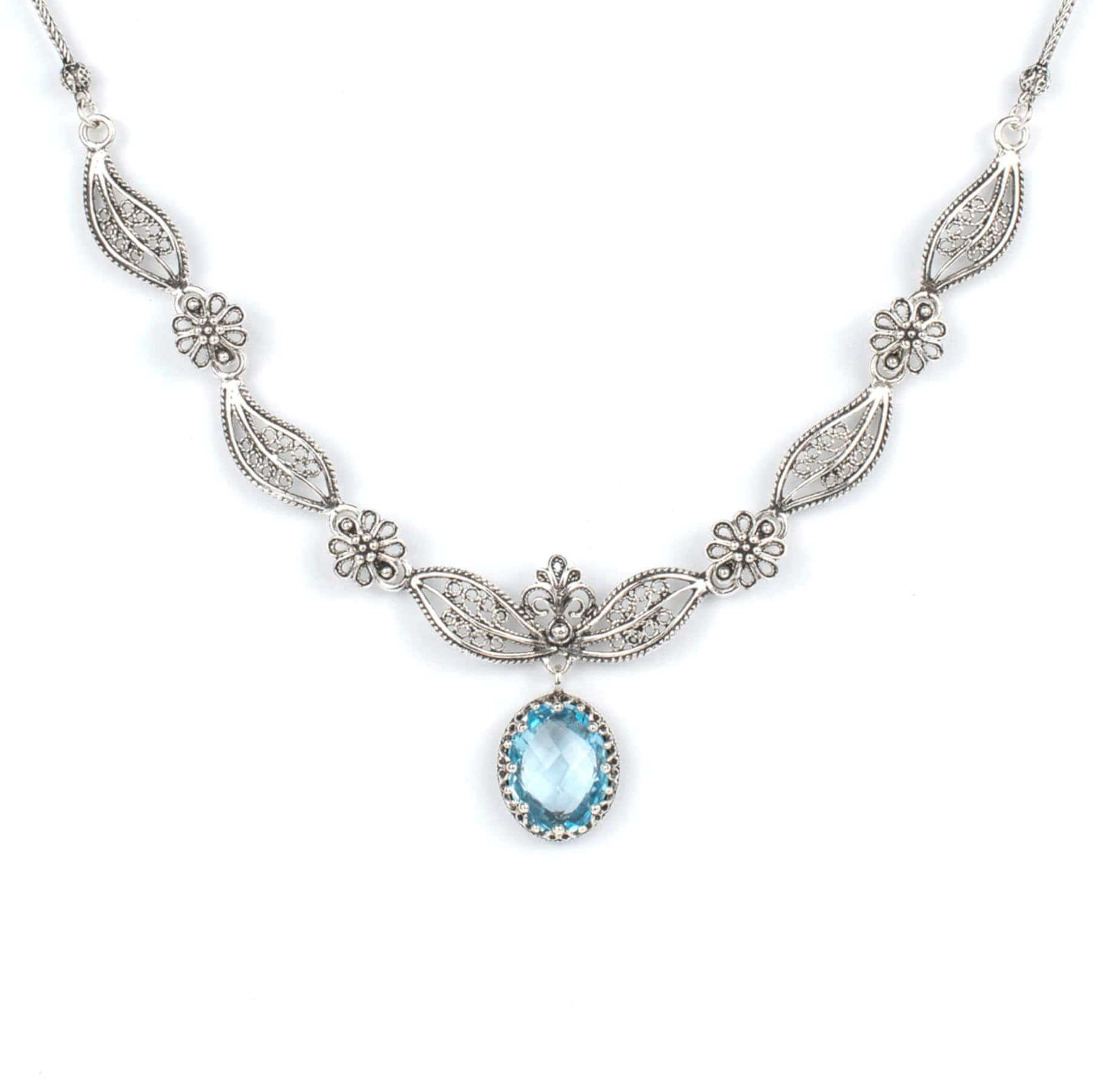 Filigree Art Blue Topaz Gemstone Women Silver Princess Necklace