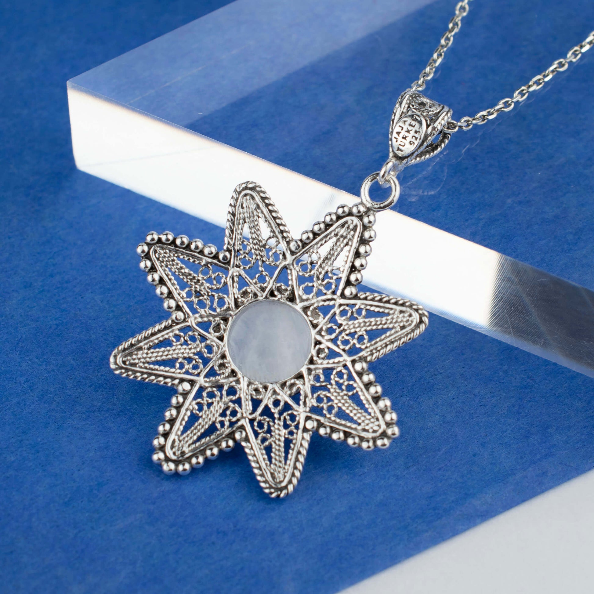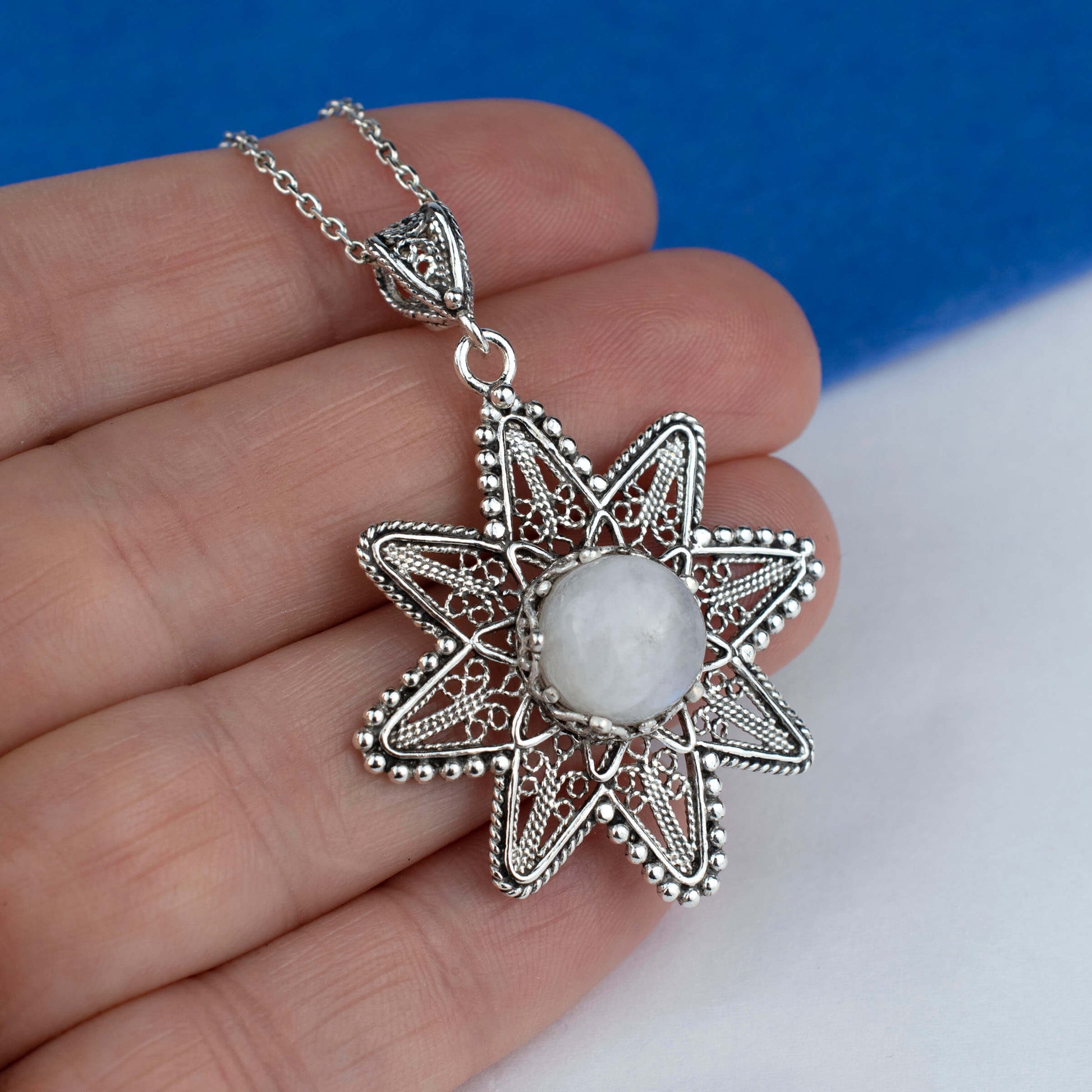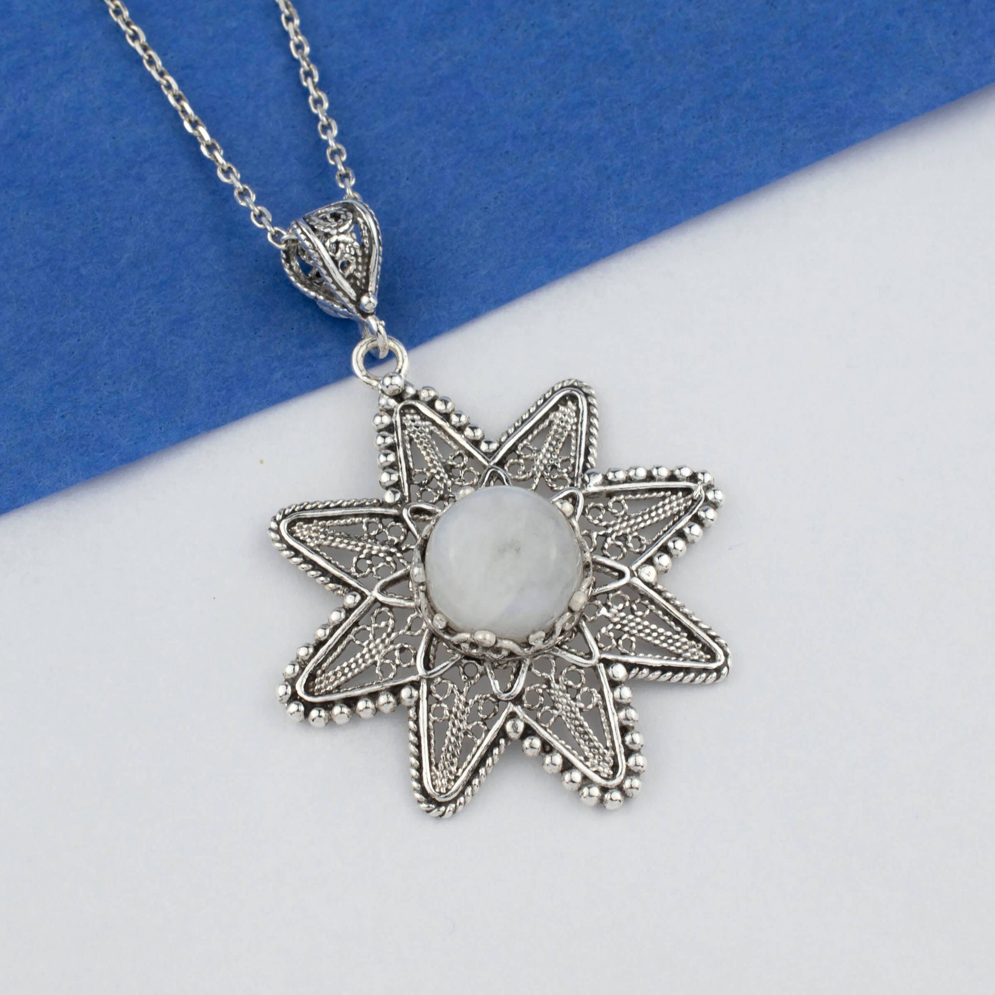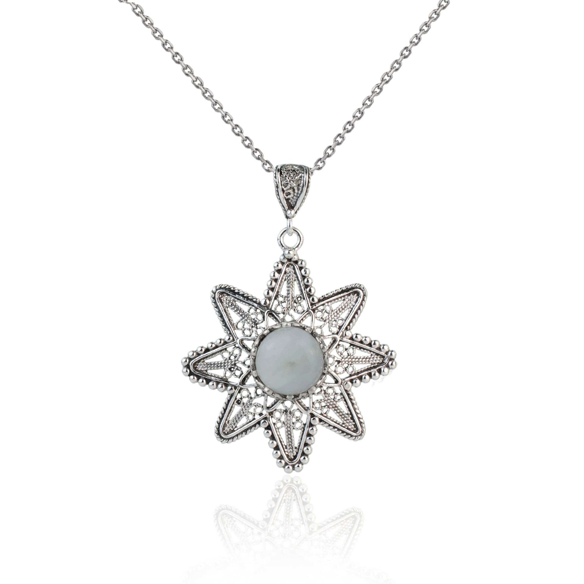 Filigree Art Moonstone Gemstone Sunflower Design Women Silver Pendant