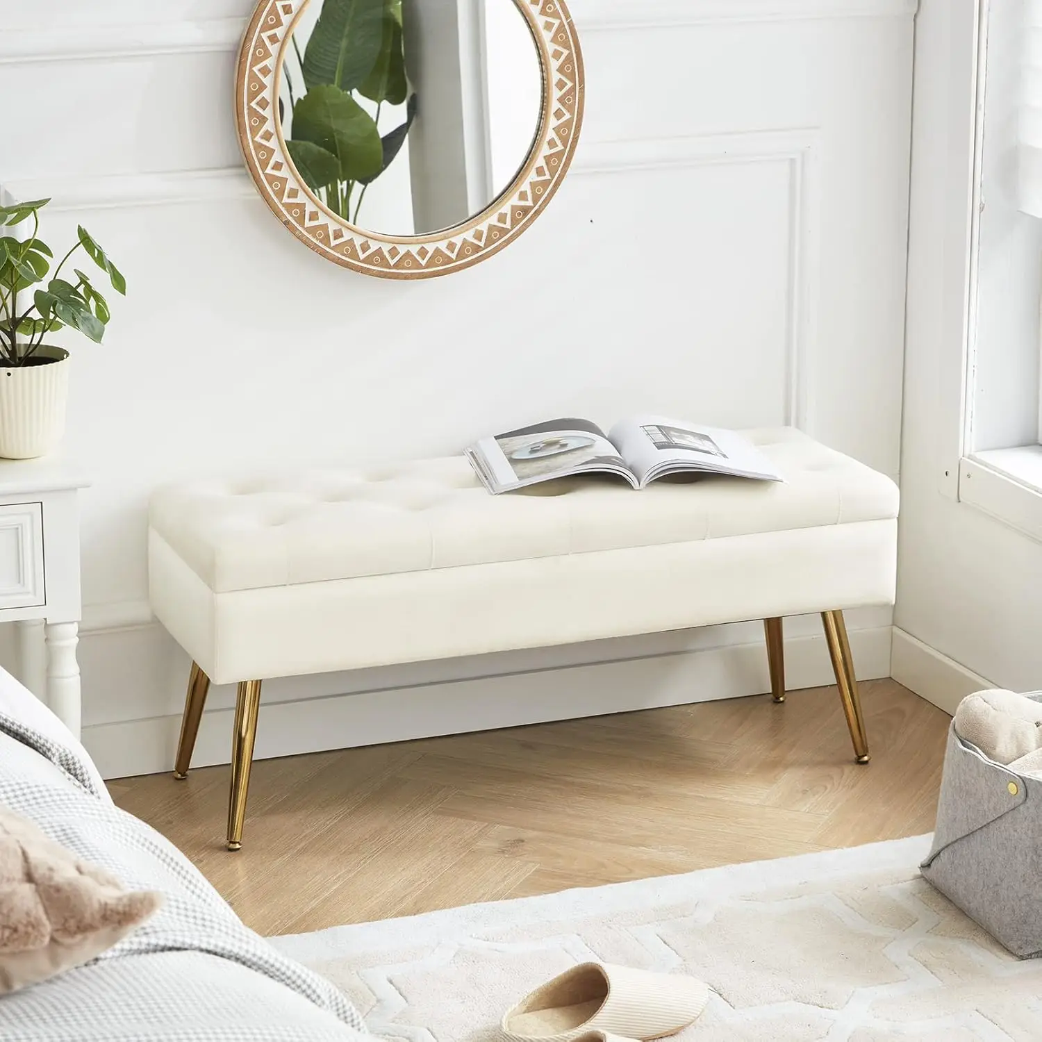 Storage Ottoman Bench 40" W x 13.8" D Cream Velvet Bench