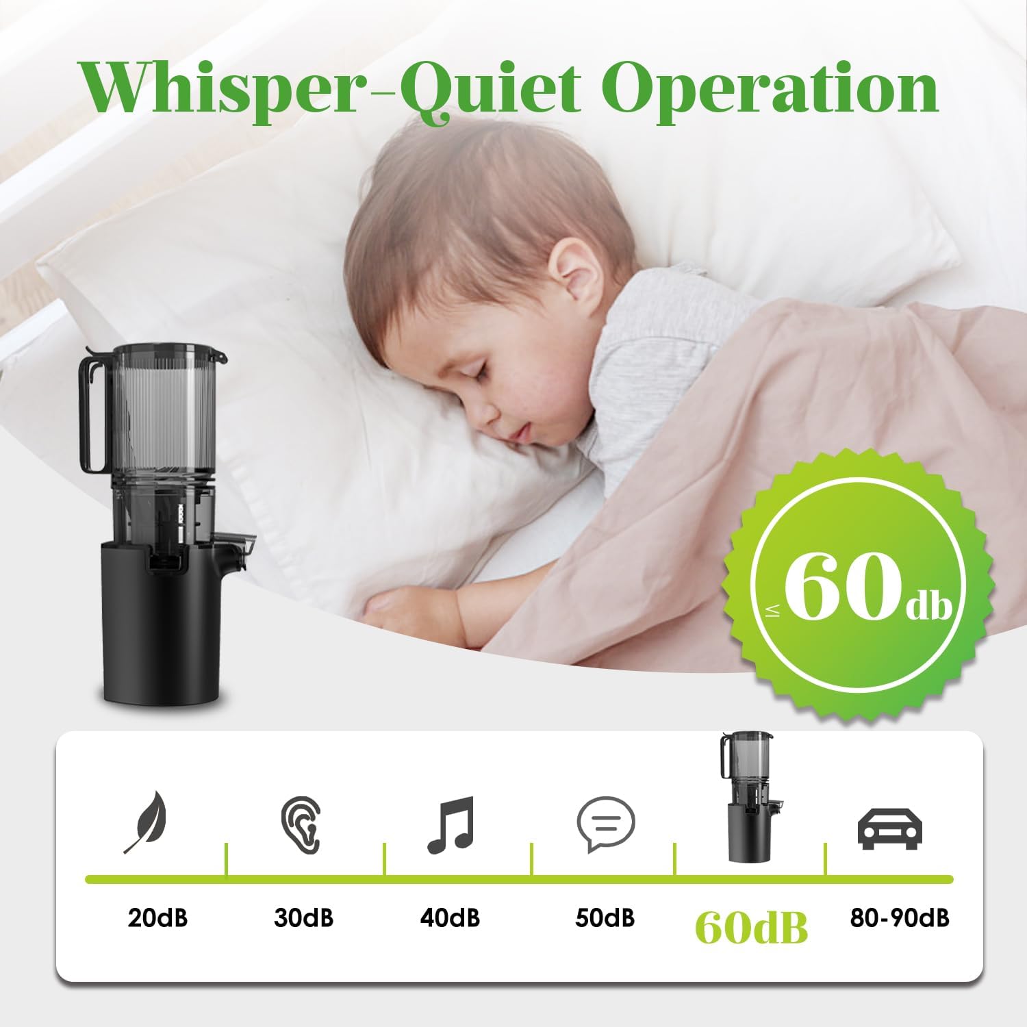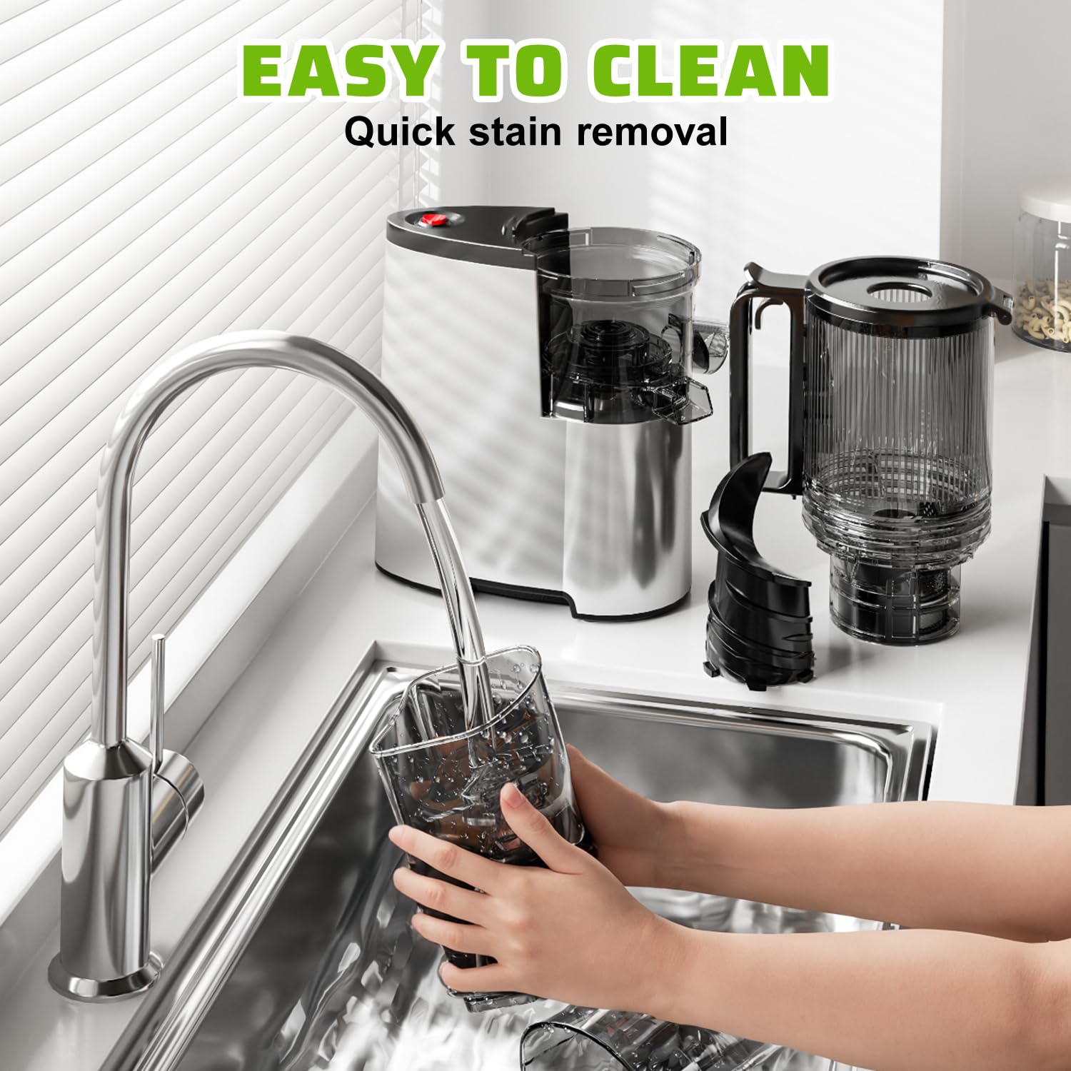 - 【400w Slow Juicing】The 400W power motor helps you easily and quickly complete the juicing task. With its high-power motor, our cold press juicer provides a 99% higher juice yield by separating the pulp from the juice well, resulting in better-tasting, purer juice that retains more nutrients.