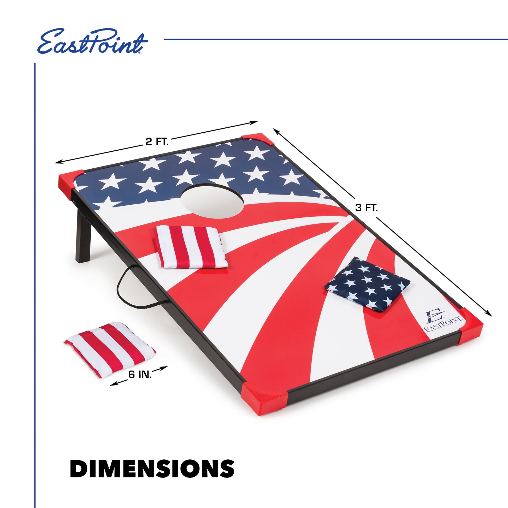 Show your Stripes! Make the Founding Fathers proud and toss your bean bags at Star Spangled outdoor cornhole boards! A Slick Sliding Surface allows your bags to glide into the holes with ease. When gameplay is complete, store your bags between the boards, attach them together, and carry away effortlessly. Don’t be afraid to take your boards with you wherever you go - Reinforced Corners and Sides give them the extra durability they need to withstand a few knocks and bumps along the way! Complete with 8 Bean bags. The only question is, are you a Star or a Stripe? *- 2 – 36 in x 24 in (91.44 cm x 60.96 cm) Deluxe Bean Bag Toss Boards with Reinforced Corners and Sides *- 8 – Premium Bean Bags – 6in x 6in (15.2cm x 15.2cm) *- Complete Set of Game Rules and Instructions *- Organized space-saving storage for all your components and accessories *- Boards attach together for easy portability *- Boards are not Waterproof