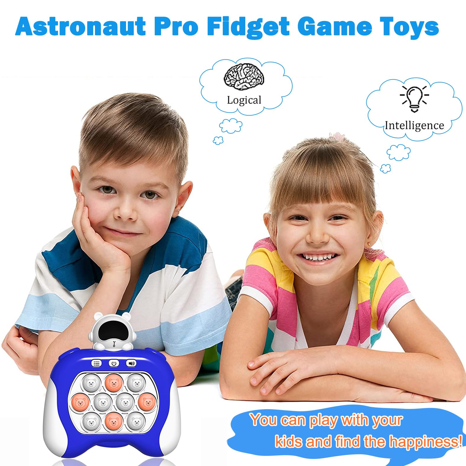 - 【Speed Push Game Console】The fun light-up fast push bubble game will attract kids entertained for hours, which keeps kids away from phones and tablets, effectively reducing screen time. kids can play with friends or parents at the party and in any outdoor/Indoor activities. Pop fidget game toy can also help you focus and beat boredom. A good helper to relieve work, study, family, office stress and generate happiness.