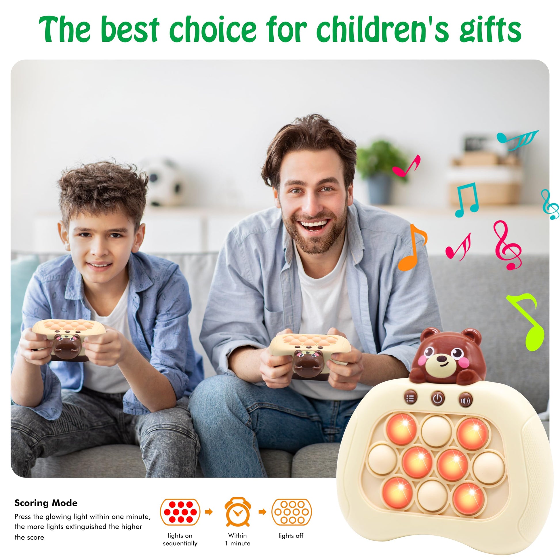 - 【Pop Fidget Game Toys】Our latest upgraded version of handheld bubble game toy is simpler and more fun than most Simon game toys.Kids will engage in positive thinking, hand-eye coordination, and brain training during play challenges filled with lights and sounds, promoting your child's sensory development.