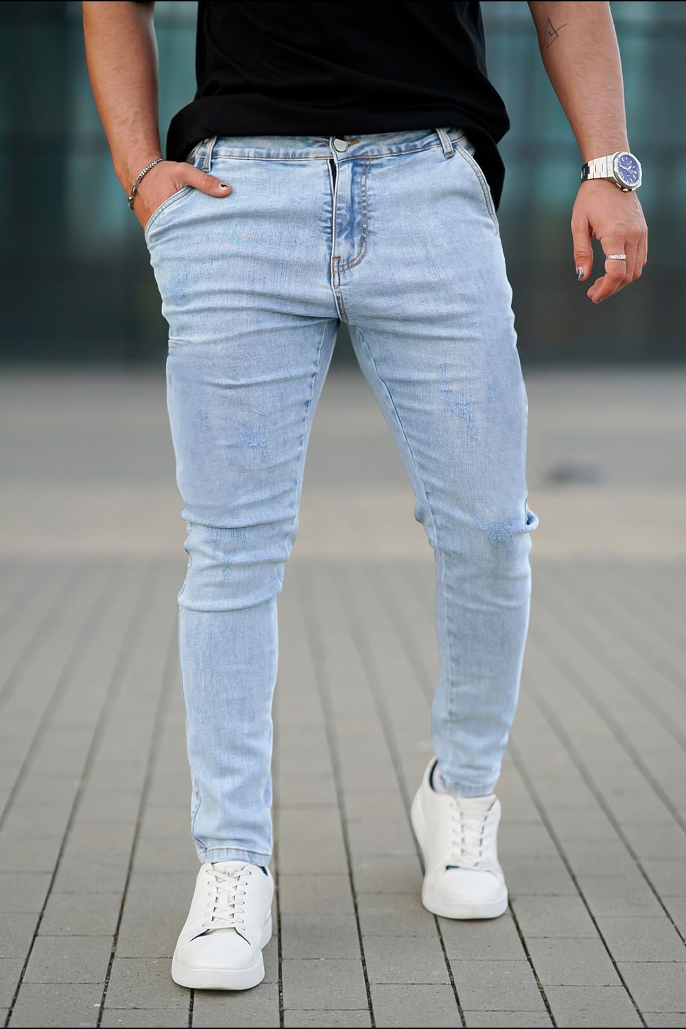 - Very Stretch, These Skinny Jeans for Men are very Elastic and Offer Relaxed Mobility Without Any Restrictions. They Have Lots of Stretchy So Your Body Will not Feel Any Pressure All Day Long. Not Too Tight, Not Too Loose, With Just the Right Amount of Fabric. Machine Washable.