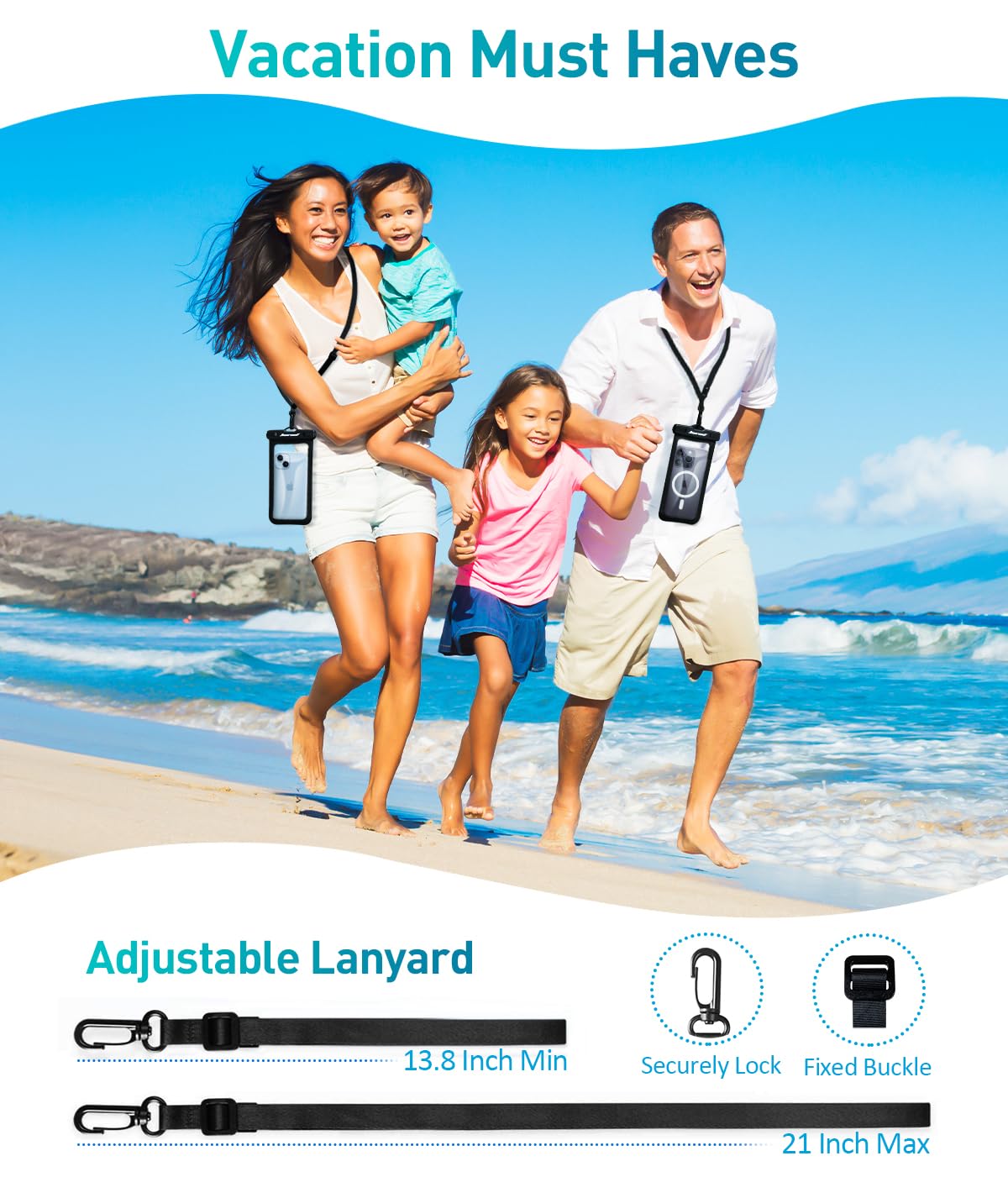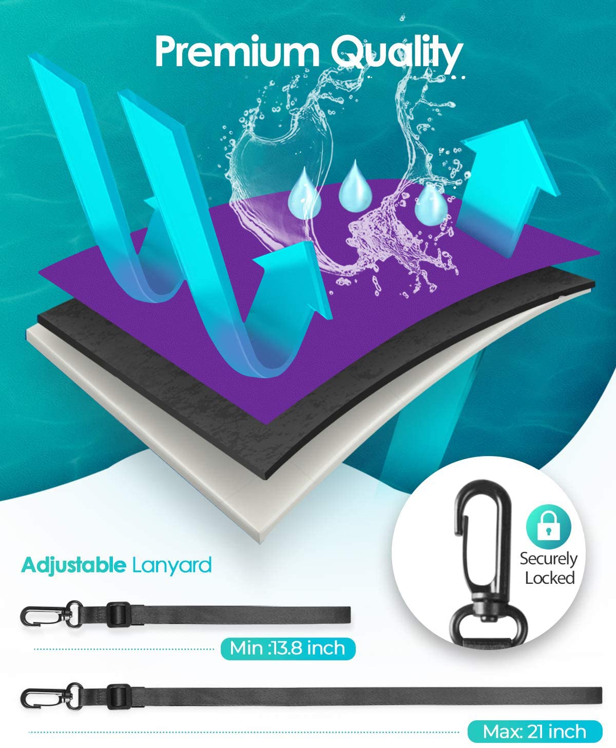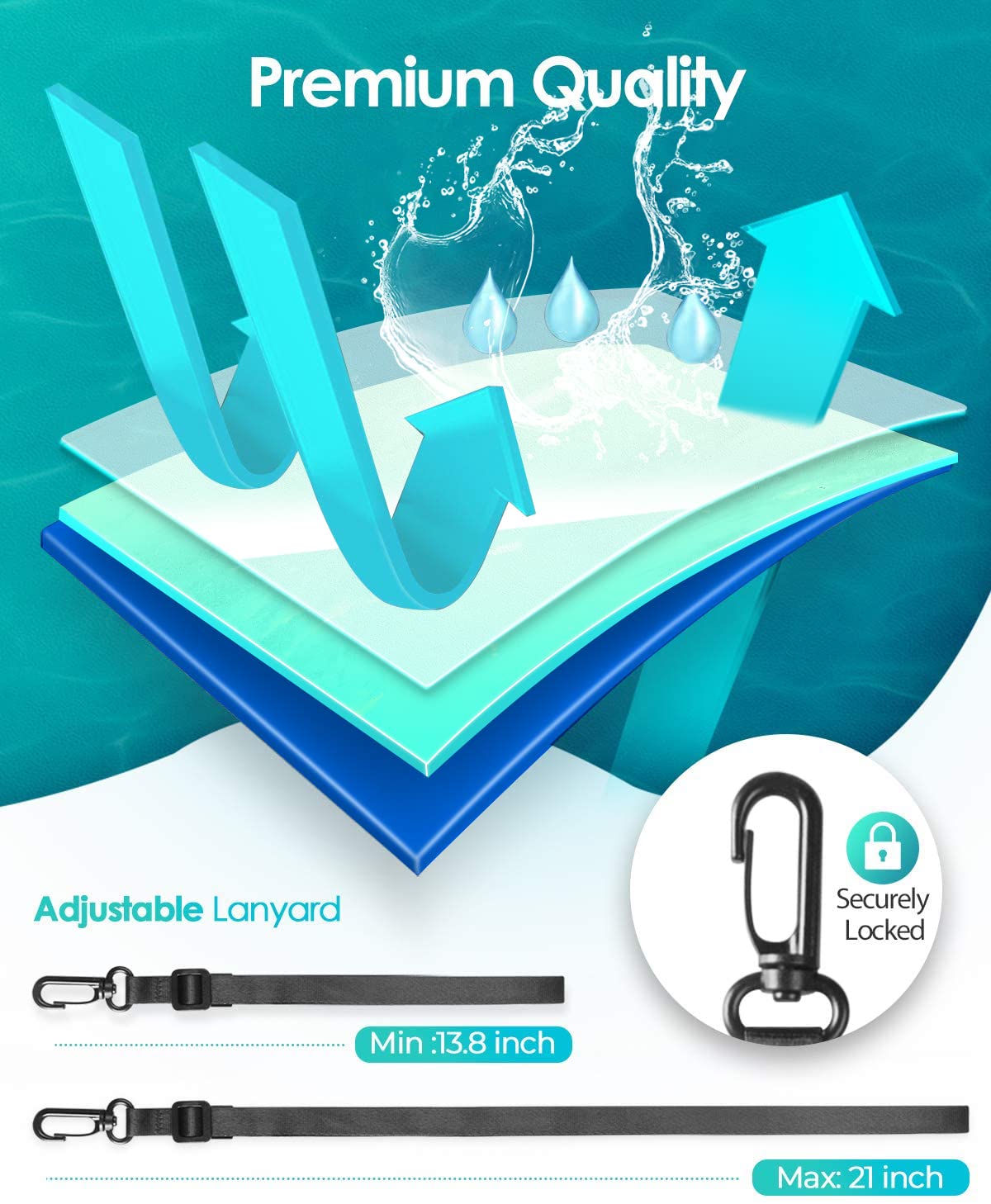 - [ADJUSTABLE LANYARD]: Comes with a detachable lanyard from 13.8 to 21 inches providing multiple choices for the length you prefer—lifestyle by crossing your body or around your neck.The Hiearcool waterproof phone pouch is perfect for various activities, such as beach playing, water park, swimming, snorkeling, kayaking, rafting, or even taking a shower with your phone in hand.