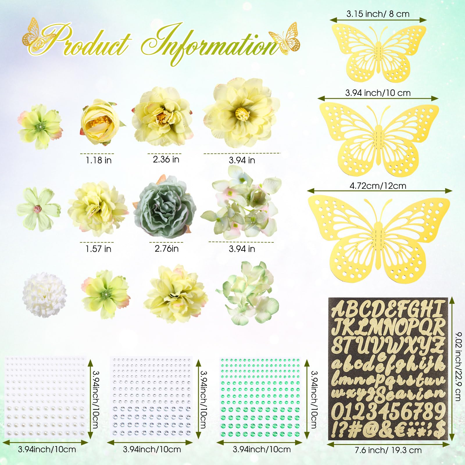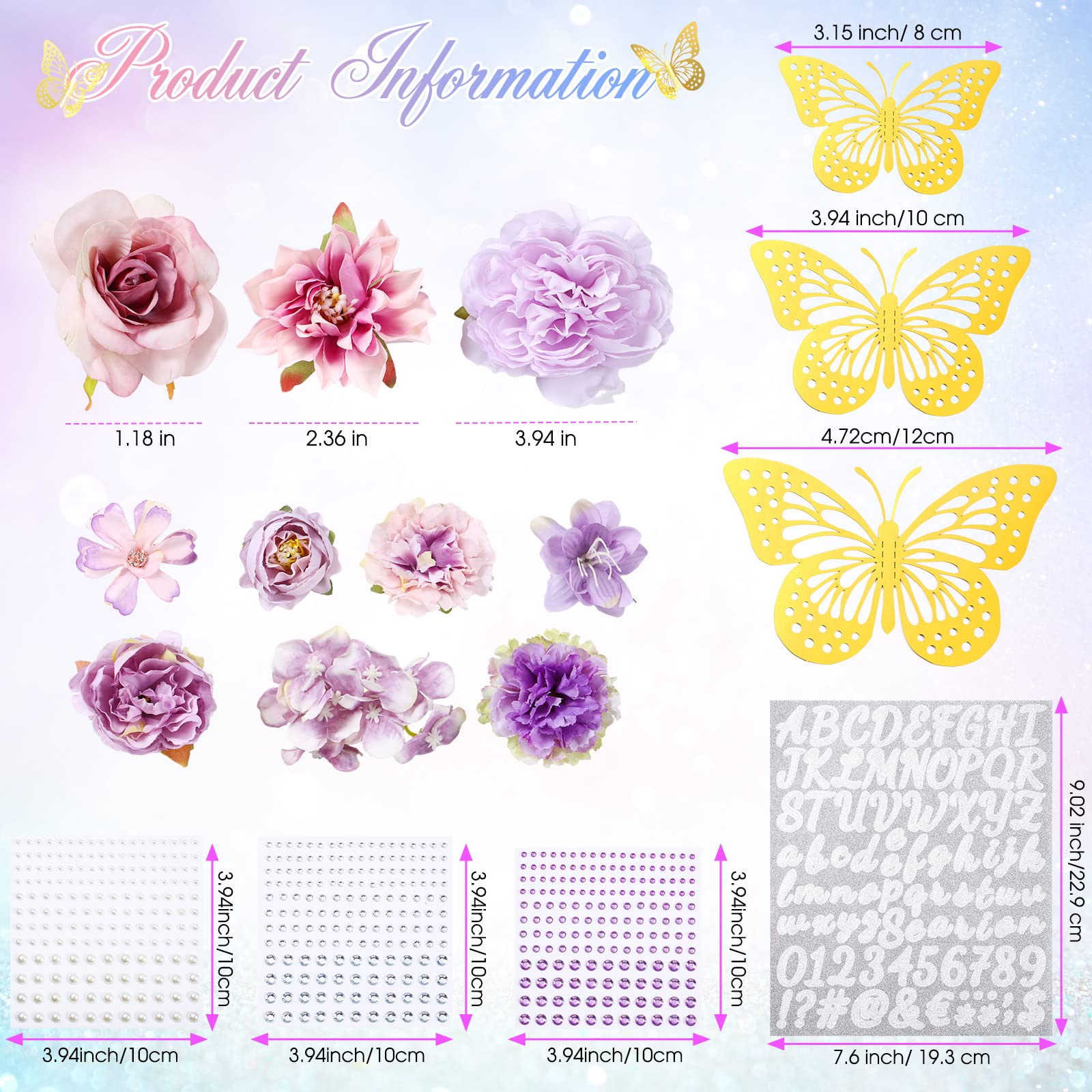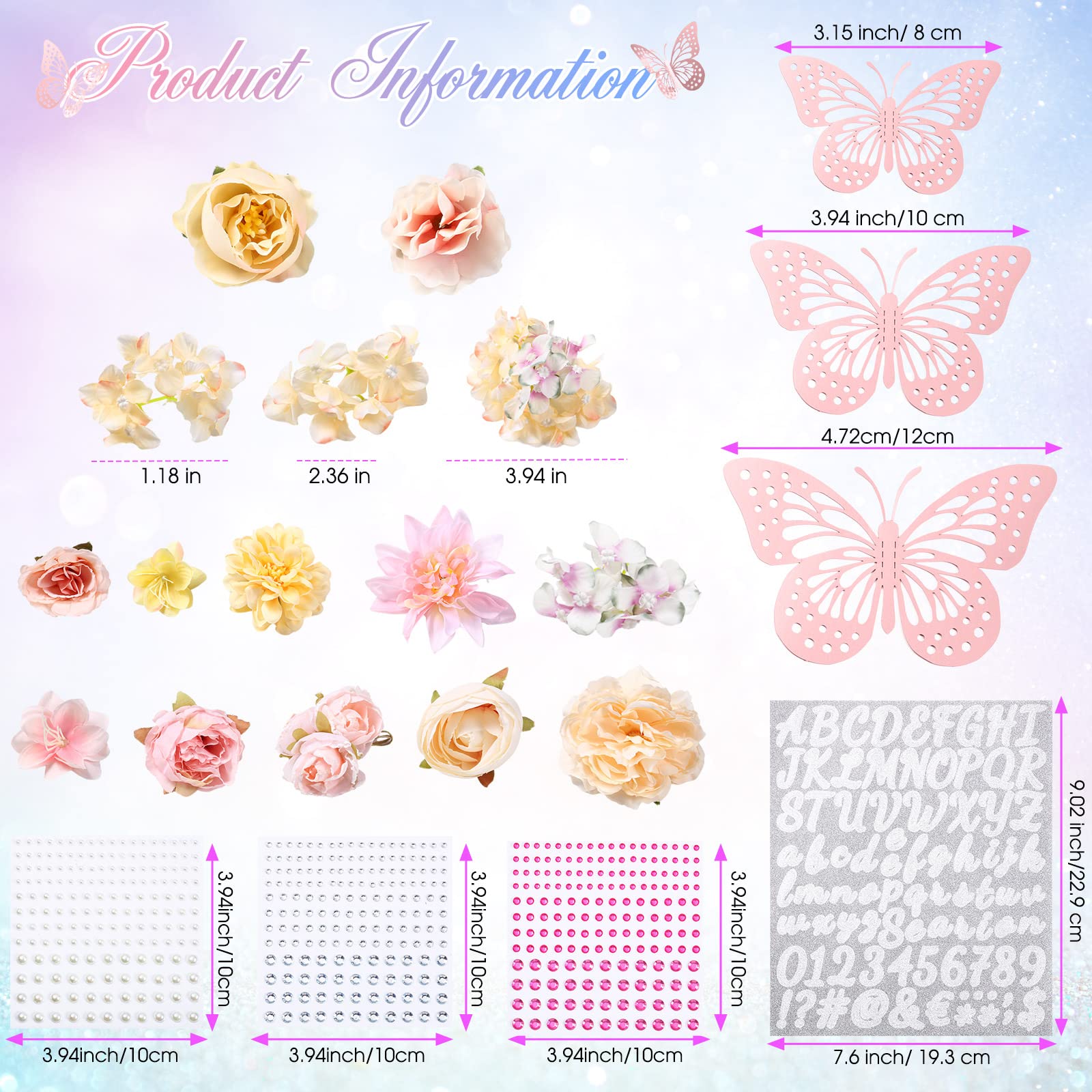 - Suitable Size: the 3 D butterflies stickers have 3 size, about 3.15 inches/ 8 cm, 3.94 inches/ 10 cm, 4.72 inches/ 12 cm; The letter stickers measures about 9.02 x 7.6 inches/ 22.9 x 19.3 cm; The faux flowers measure about 0.79-1.97 inches/ 2-5 cm; The pearl and rhinestone stickers have 3 different sizes, about 0.12 inches/ 3 mm, 0.16 inches/ 4 mm, 0.24 inches/ 6 mm, which are suitable for you to use