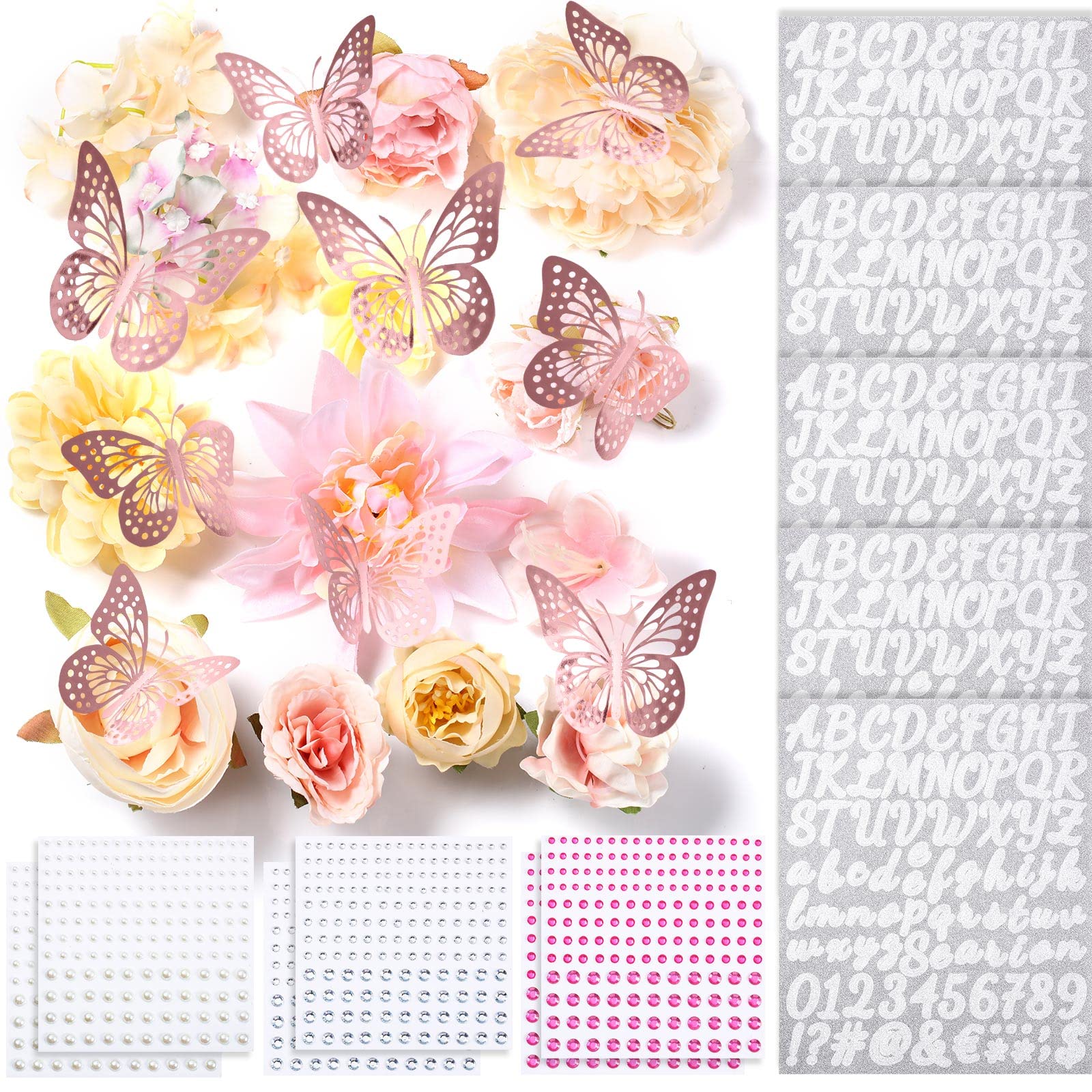 - Thoughtful Hat Decorations Kits: the package includes 1 set of fake flower heads, 5 pieces of letter stickers, 12 pieces of 3D butterflies stickers, 2 pieces of pearl stickers, and 4 pieces of rhinestones stickers, the thoughtful set will meet your need to decorate your hat