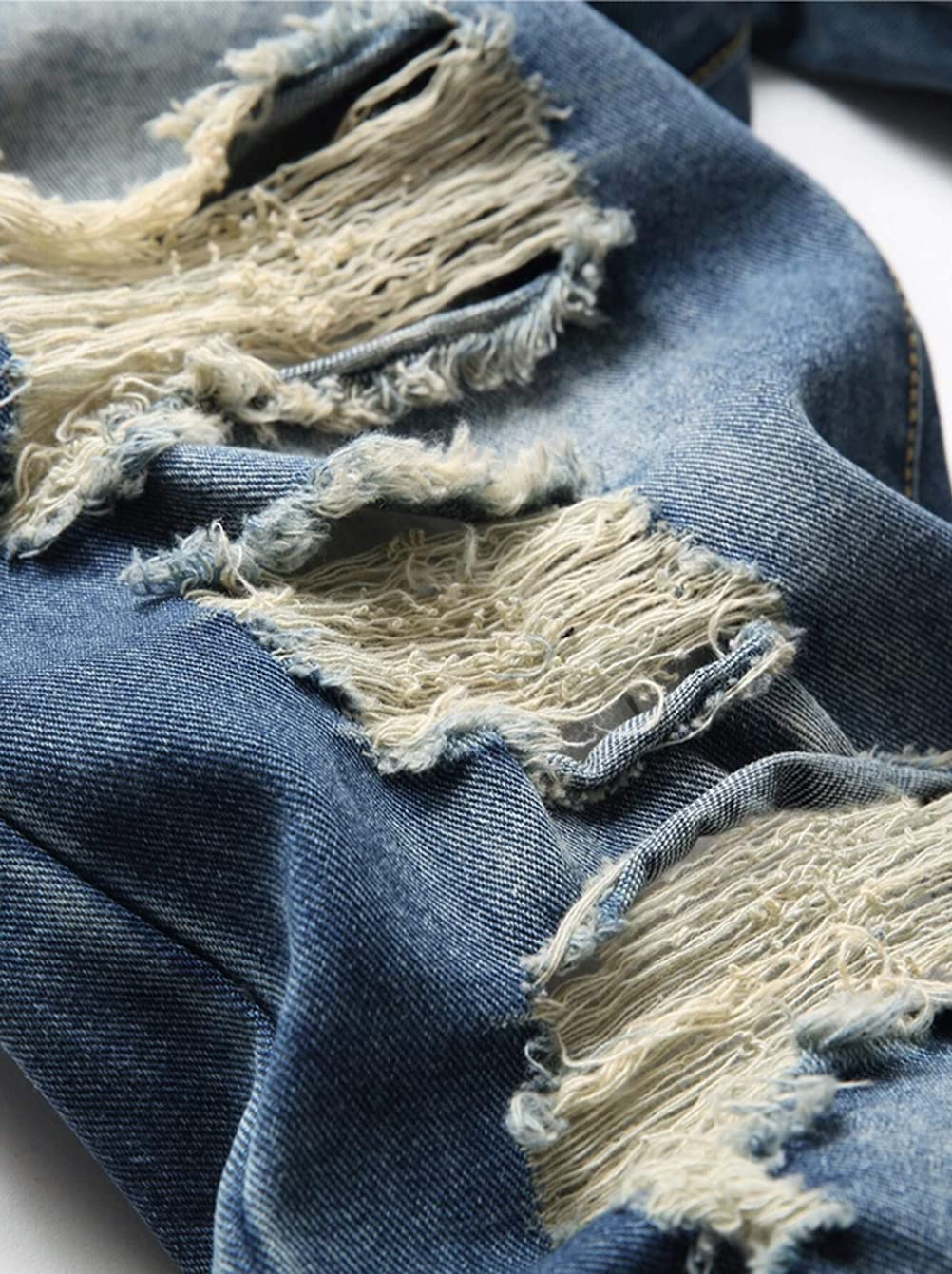 - These distressed jeans are constructed from a perfect blend of stretch-cotton fabric that help maximize freedom of movement, ensures comfortable to wear all day.