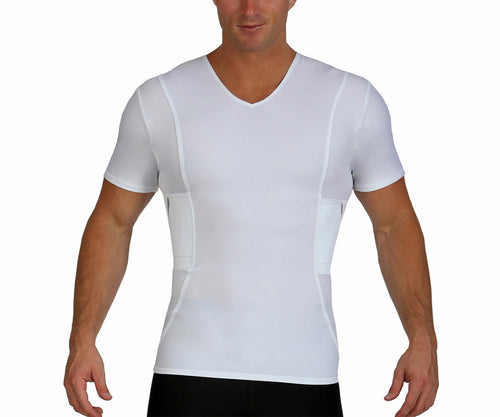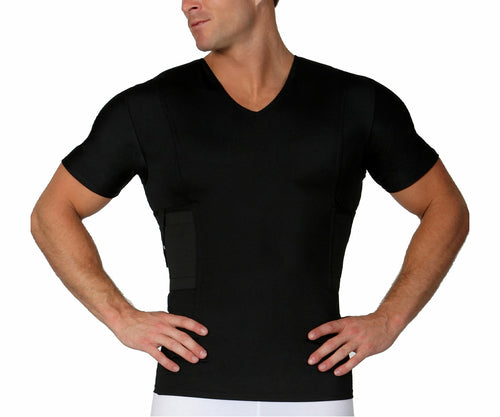 Insta Slim exclusive innovative original proven compression V-neck is now an undercover t-shirt designed and engineered to conceal and carry small to medium frame handguns and most full size handguns without the need for bulky or uncomfortable holsters.