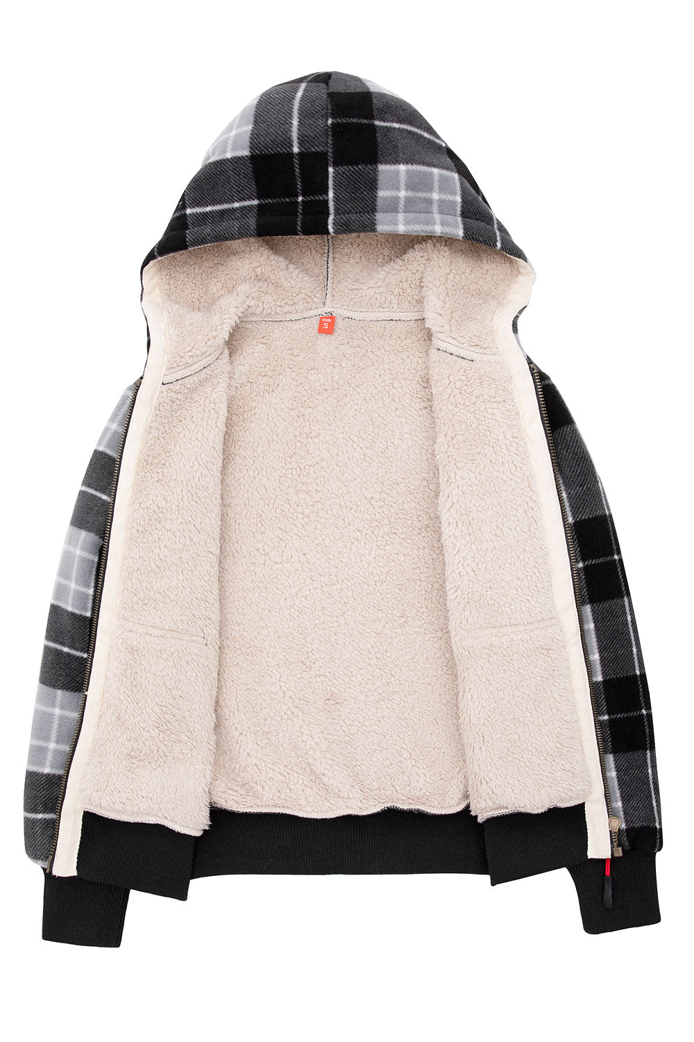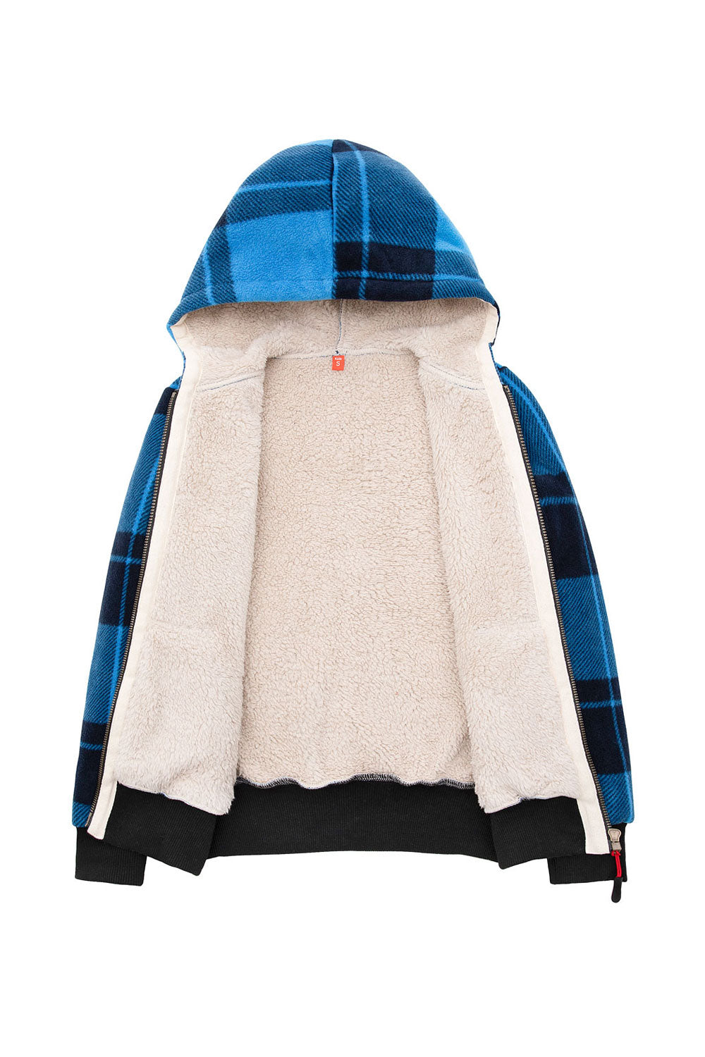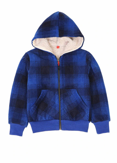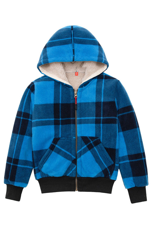 Kids Boys and Girls Sherpa Lined Full Zip Hooded Plaid Sweatshirt Jac