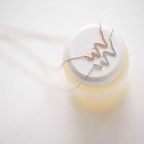 Life Line Necklace is made in all 925 Sterling Silver in Platinum over Silver and Gold over Silver as well as Rose Gold Over Silver.