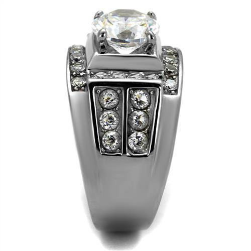 Men, Ring, Stainless Steel, High polished (no plating), Cubic Zirconia, Clear