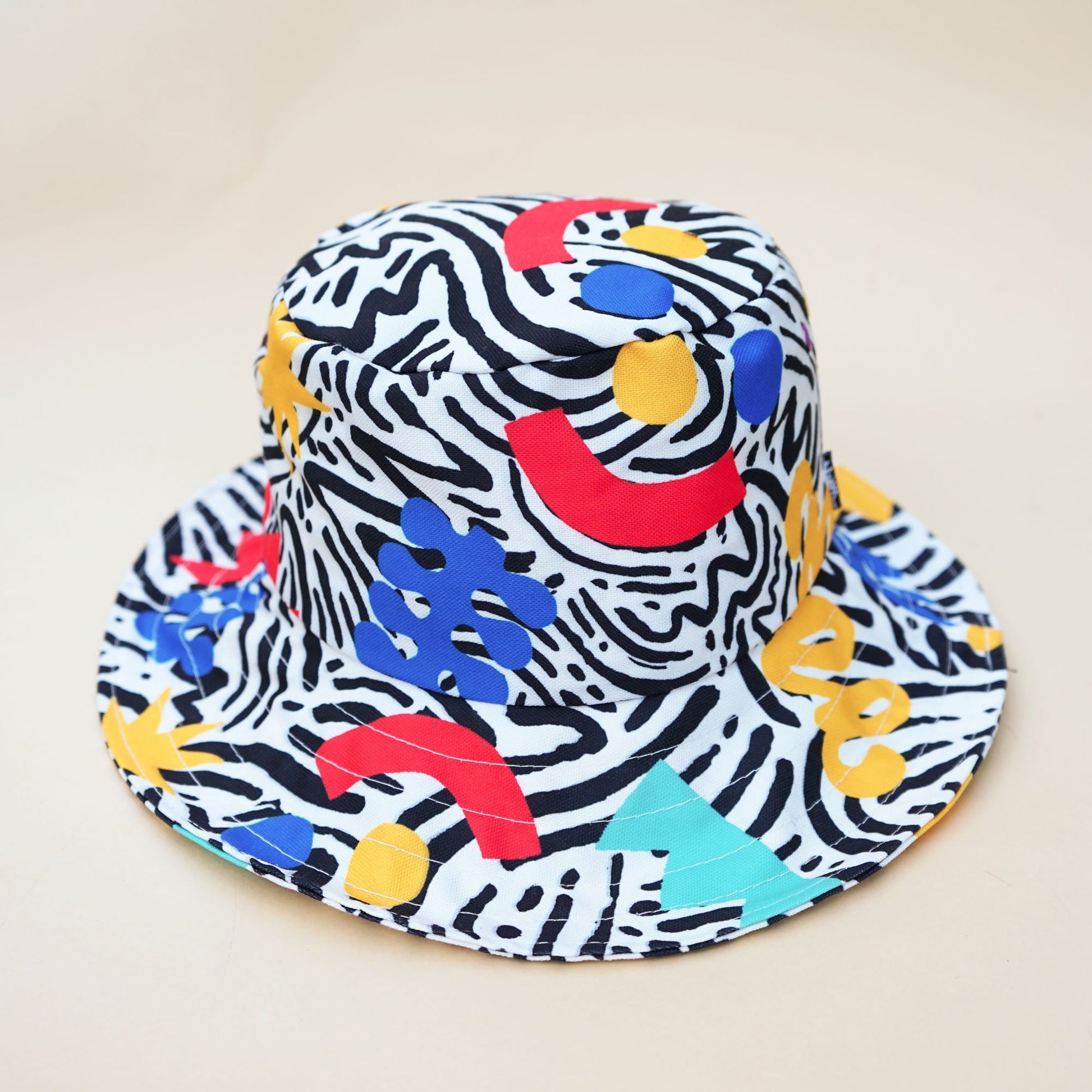 Pulling on the big shade and look stylish with this multicolour wide bucket hat. Made from cotton canvas with Easy to wear and perfect for strolling on the beach or relaxing in the park. Pull on with your shorts and pair with tote and sandals. The panther is ready to roar.