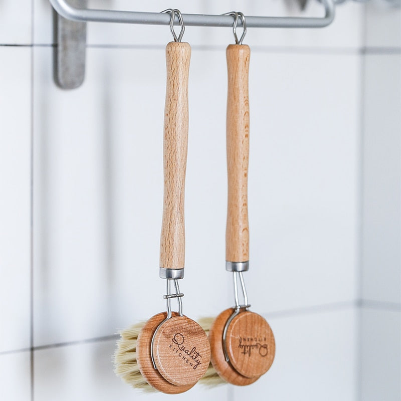 An eco-friendly alternative to sponges and wires, these beech wood pot brushes are easy to clean and efficiently clean all cooked on messes. Their beautiful natural wood lines add a rustic look to your kitchen, and make cleaning up a breeze. For long term use and hard messes, look no further.