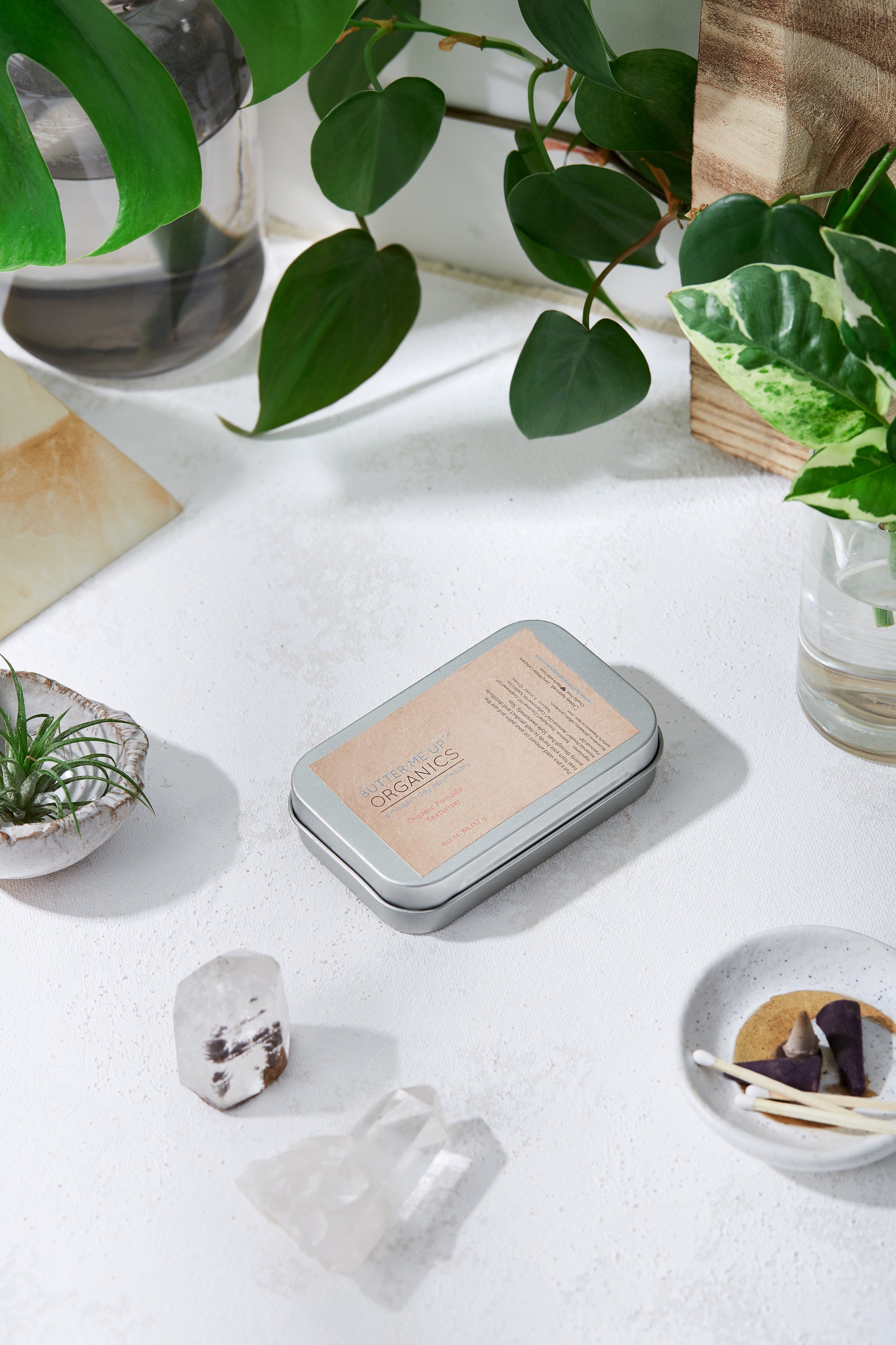 Ingredients: Beeswax, Shea Butter*, Coconut Oil*, Jojoba Oil*, Arrowroot Powder*, Betonite Clay*, Cedarwood Oil, Sandalwood Oil, Jojoba Oil, Patchouli Oil*