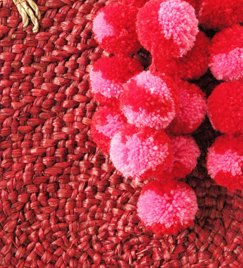 Adorable round handwoven beach straw bag made by artisans in Bali. Hand-dyed in beautiful red color using natural material harvested from Java & Bali. Sourced directly from artisans and hand-finished in our studio in La Jolla, California.
