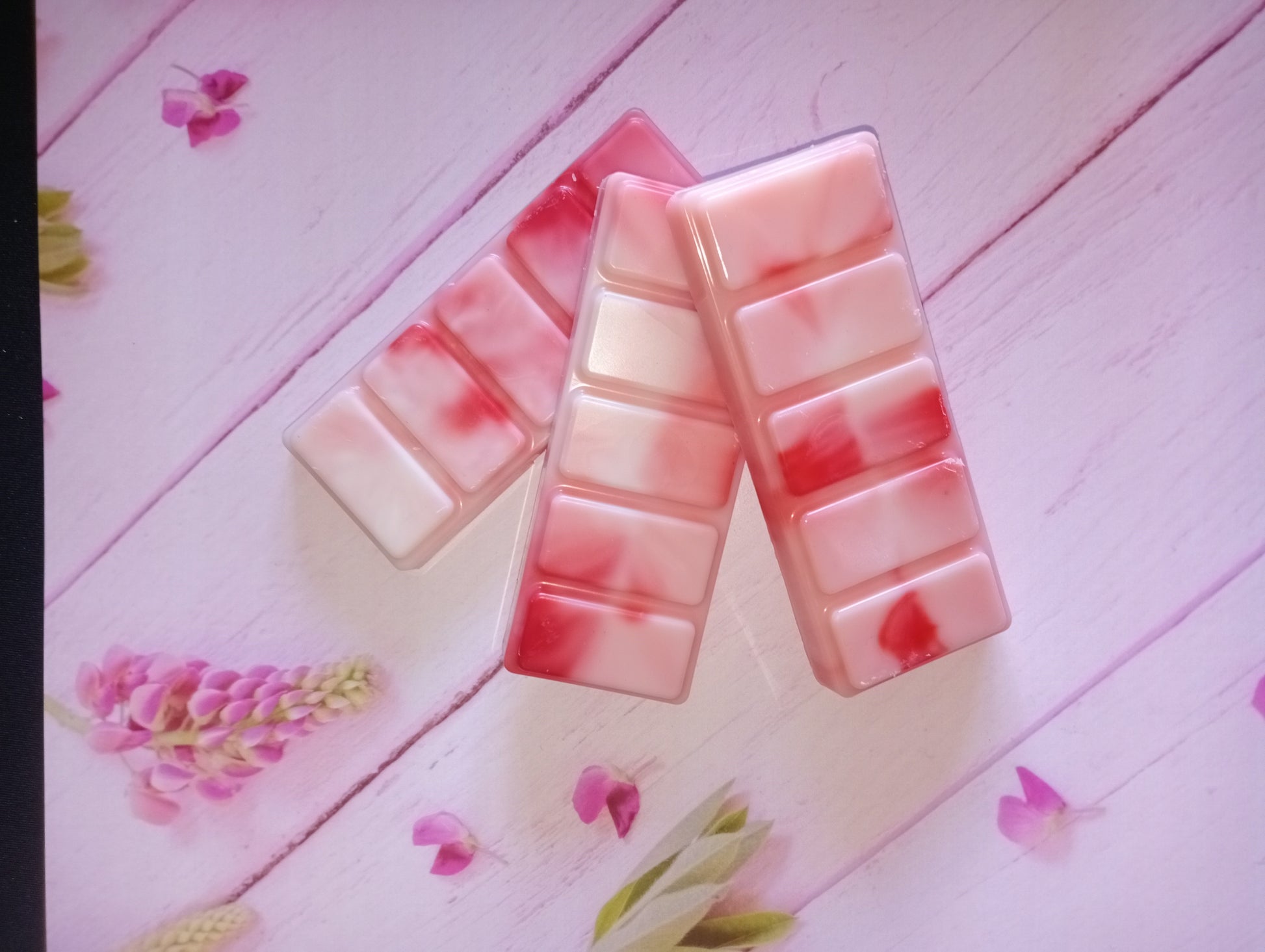 snap bars are made of 100% soya wax and Blended with the highest quality fragrance oil, some might have mica powder, bio degradable glitter and candle dyes.