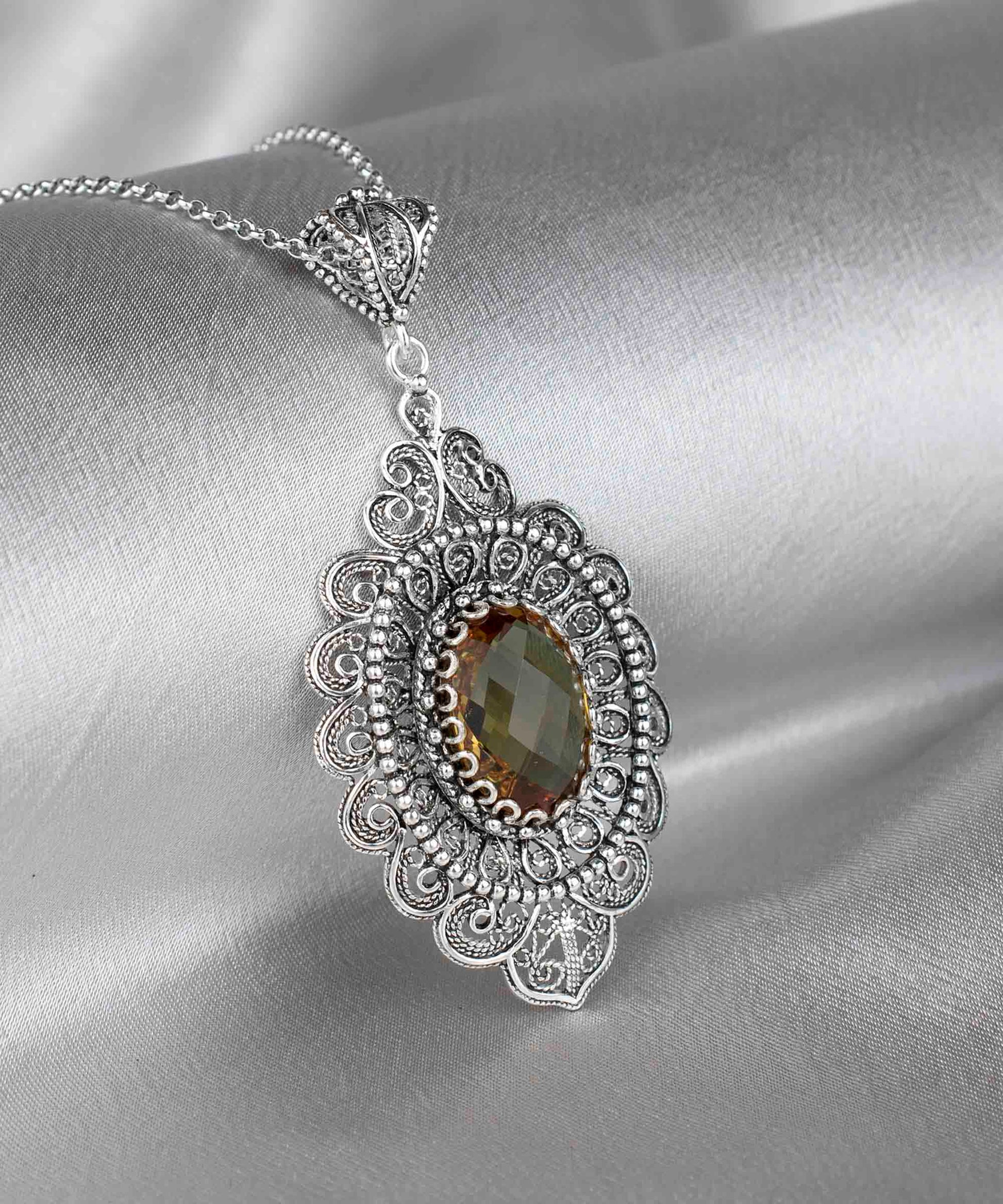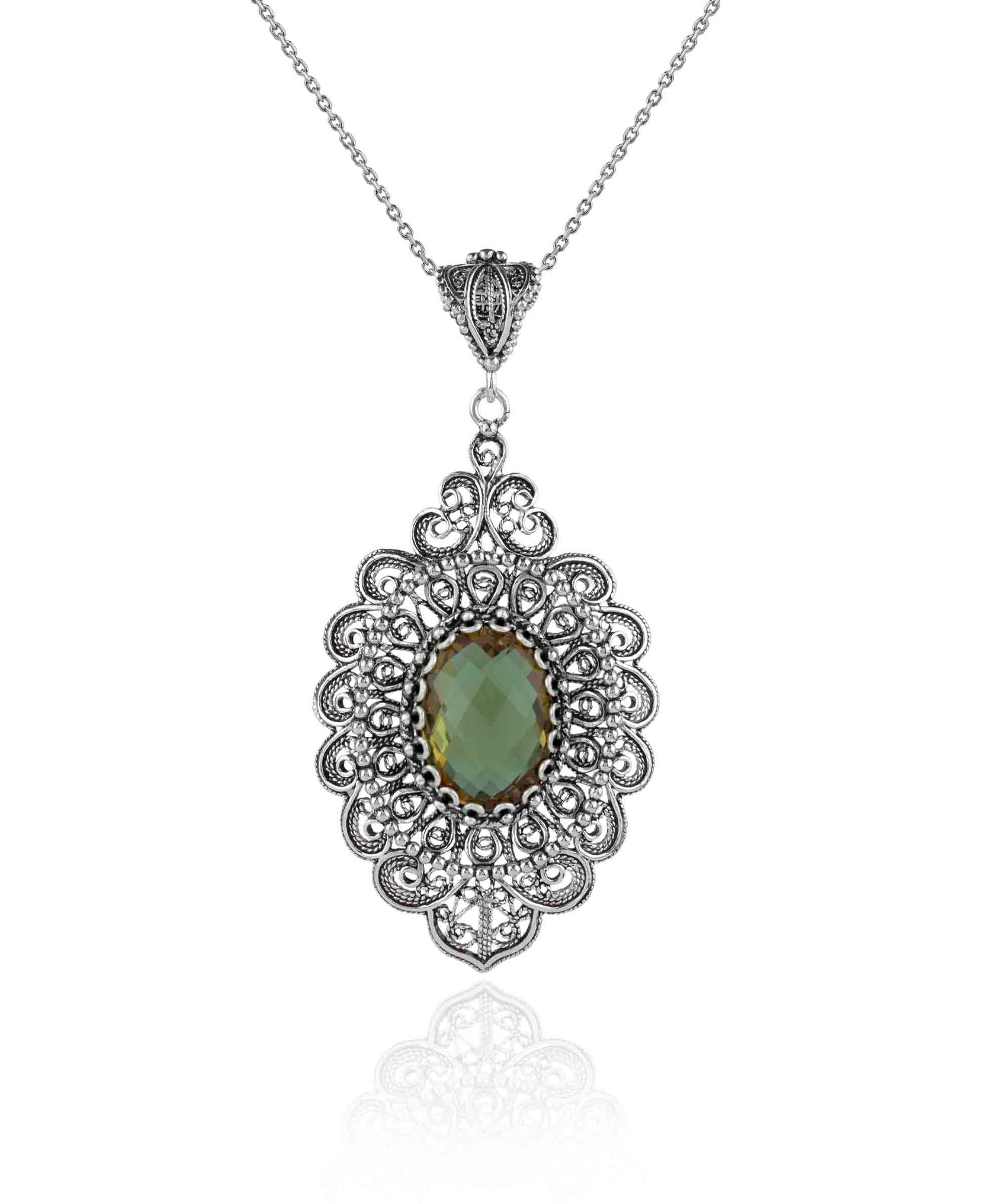 Elevate your style with this stunning Sterling Silver Filigree Art Alexandrite Gemstone Oval Floral Women Pendant Necklace. The intricate floral design made from high-quality 925 sterling silver and the stunning alexandrite gemstone makes this necklace a standout piece that's perfect for any occasion.