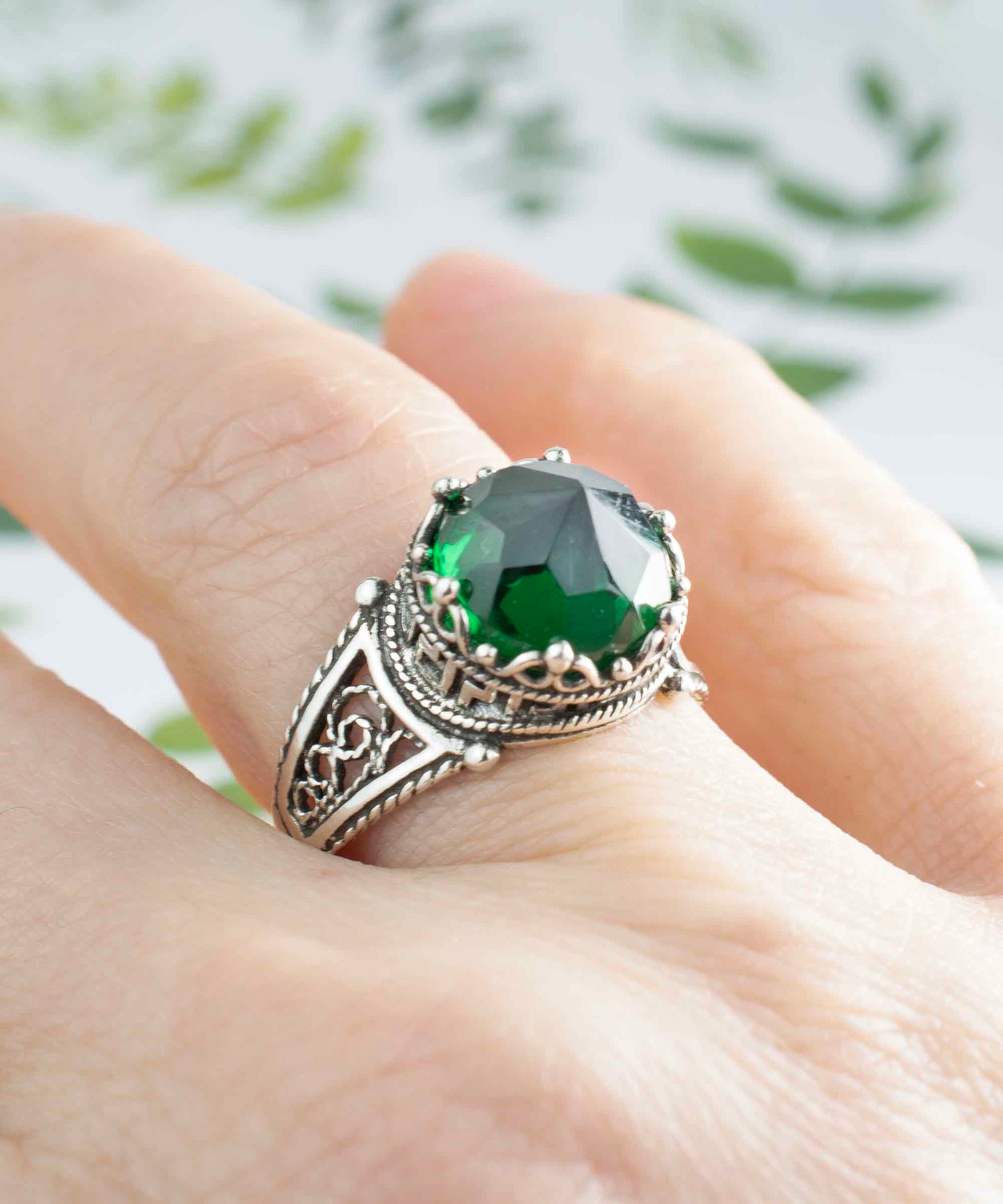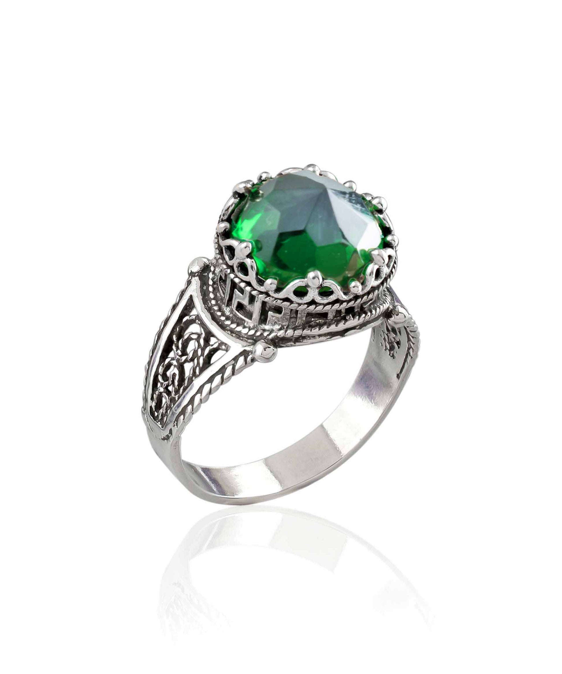 This everyday use, lace embroidery Greek Key sterling 925 sterling silver filigree art dainty crown cocktail ring has peridot gemstone. The ring face is 0.47" / 12.00 mm. Peridot gemstone is 10 mm, double side faceted, checkerboard round-cut. The August birthstone peridot gemstone would make the perfect option for a birthday gift, anniversary gift, thanksgiving gift, summer gift, valentine's day gift, mother's day gift, to yourself or your daughter, sister, wife, grandma or girlfriend.