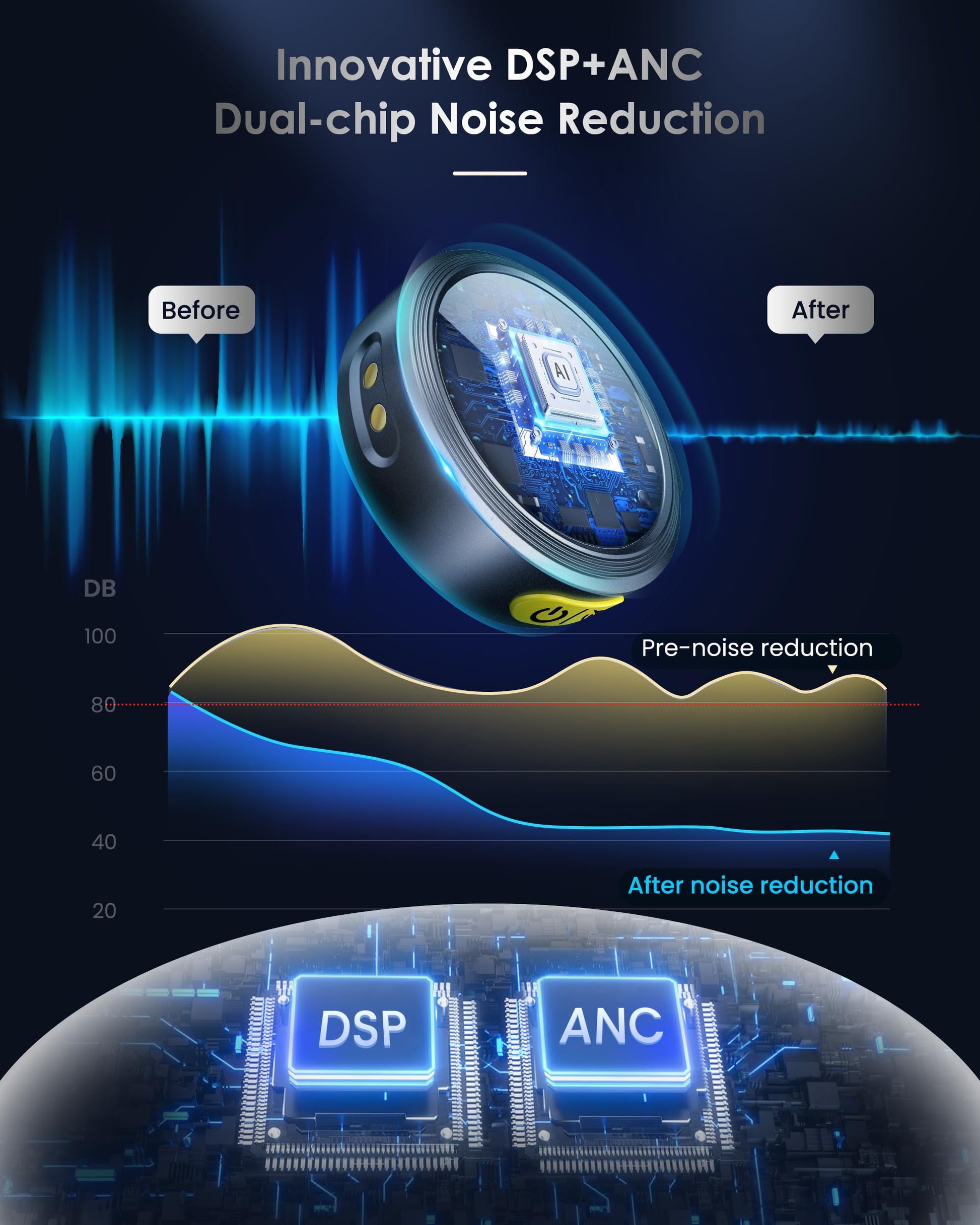 - Professional Hi-Fi Sound Capture: Experience 48kHz/24bit studio-grade audio recording, capturing every detail with precision. The 70dB signal-to-noise ratio (SNR) ensures clear audio even in noisy environments. With a 112dB sound pressure level (SPL), it records loud sounds without distortion. Advanced HD Noise Cancellation 2.0 minimizes background noise, making it perfect for streaming, interviews, and high-noise recordings