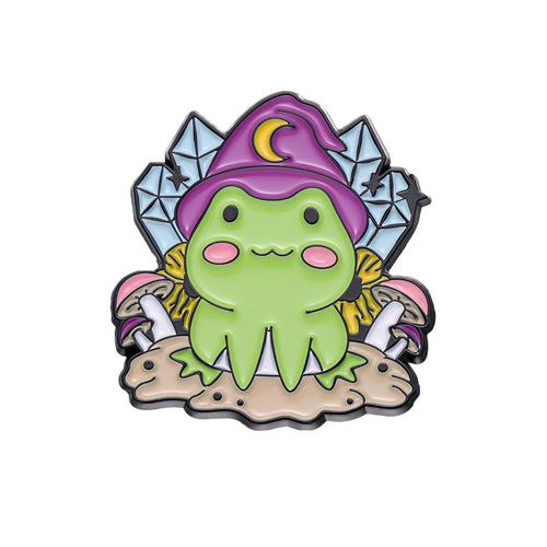 Witch Frogs Enamel Pins Custom Spell Book Magic Wand Potion Moon Phase