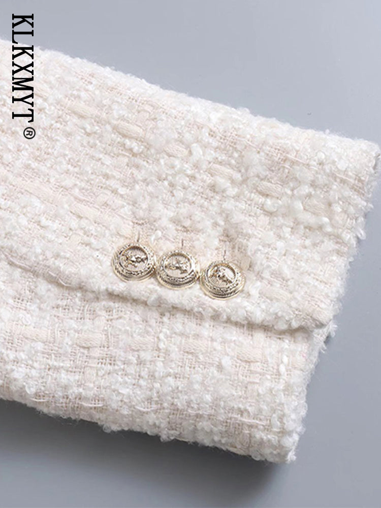 Women Double Breasted Tweed Blazer