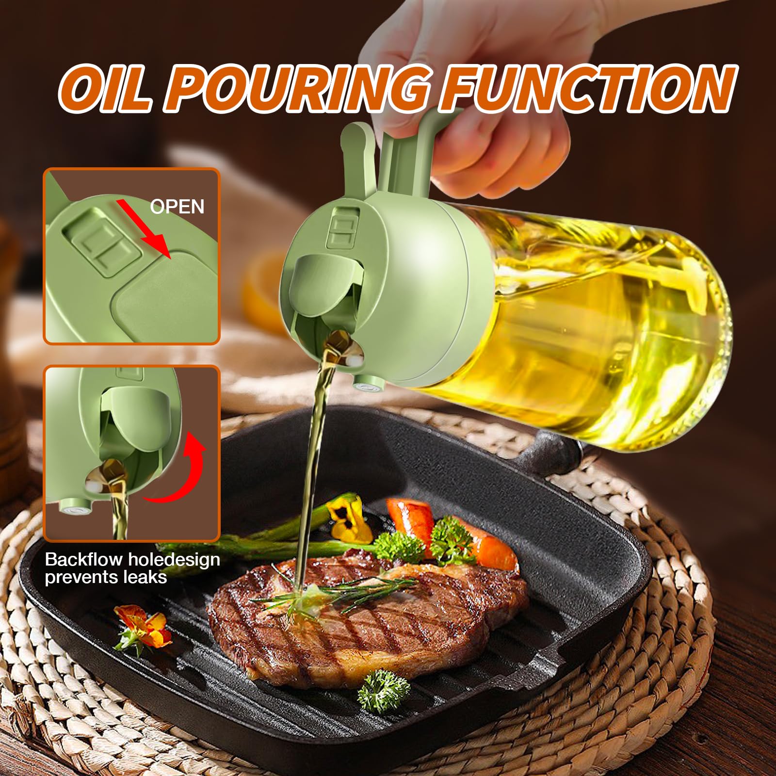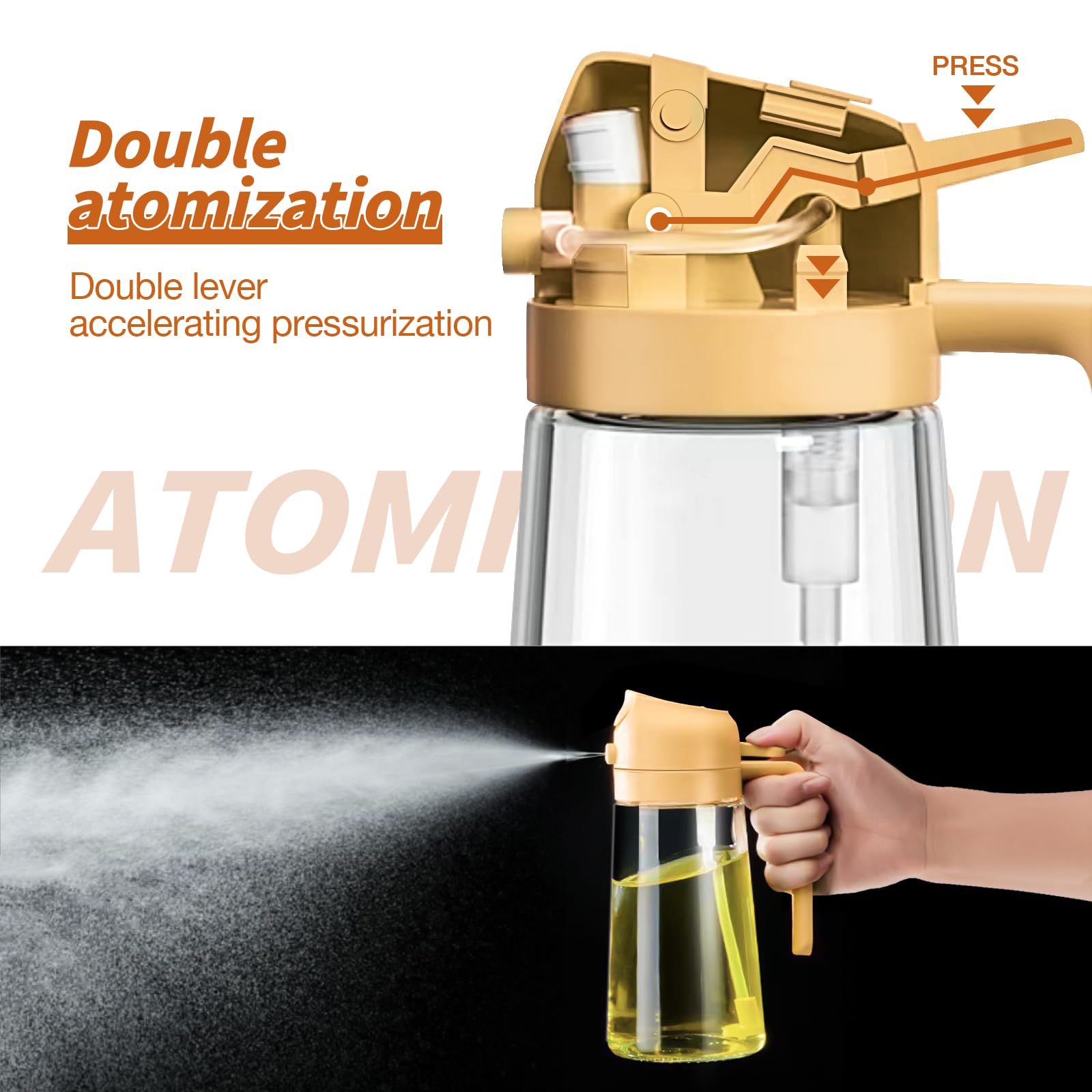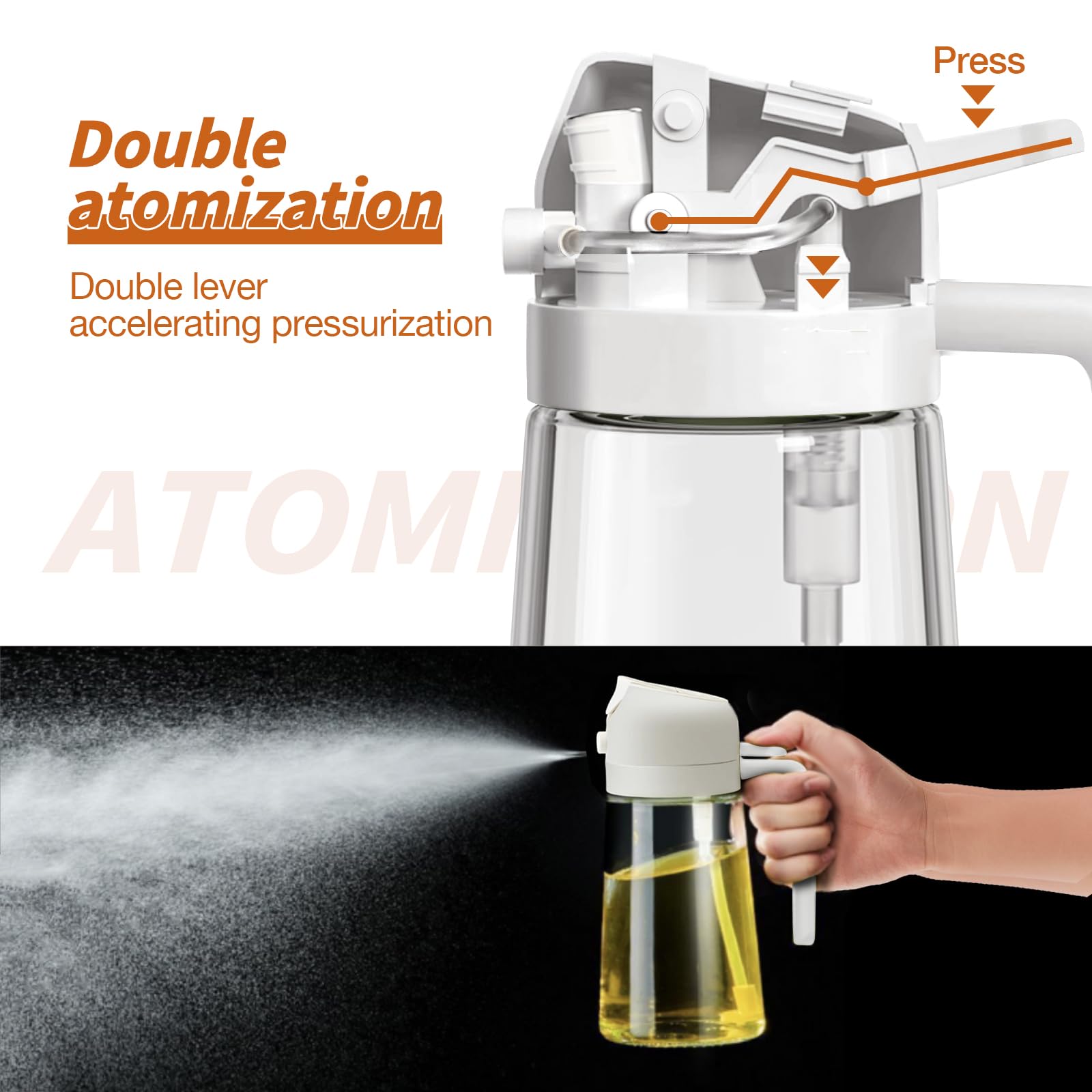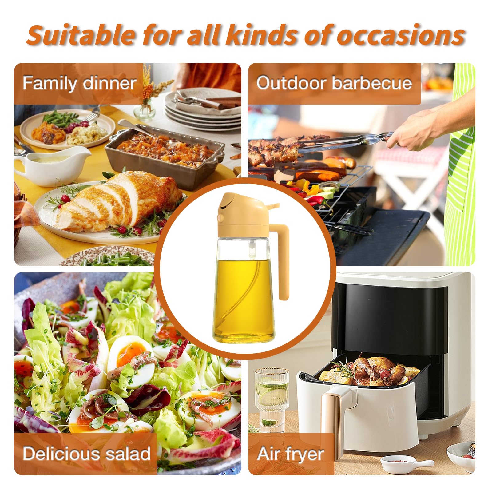 - Dual-function Design & Multi-purpose: Oil spray bottle for cooking offers the convenience of both spraying and pouring oil, suitable for a wide range of food preparation processes such as salad dressing, griddle, roasting, grilling, baking.