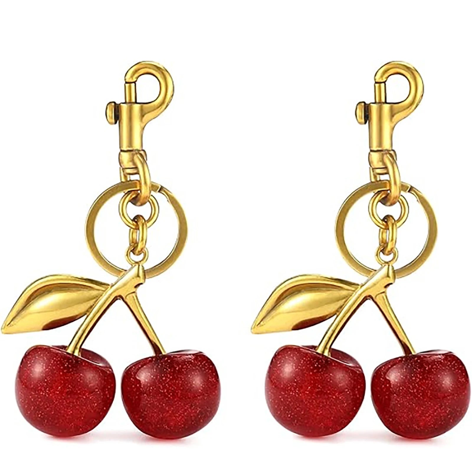 Fashion Delicious Red Cherry Keychain Summer Fruits Cherries Pendant Keyring For Women Men Jewelry Bag Accessories Gift